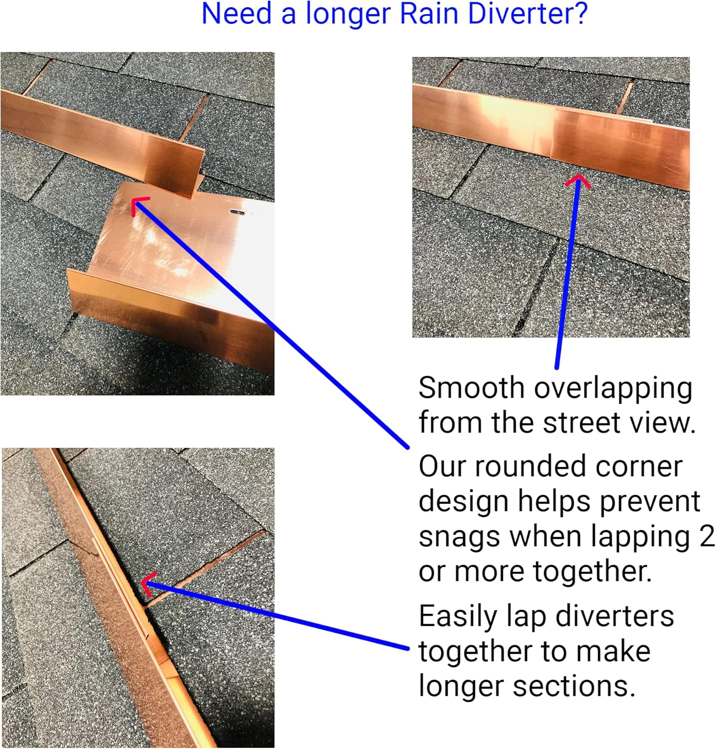 EAGLE 1- Shingle Roof Rain Diverter 40 Inches Long- 26 Gauge Material- Easy to Install- Includes Stainless Steel Nails (3, Real Copper)