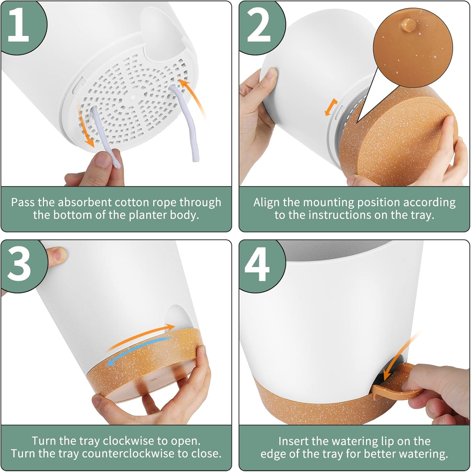 GARDIFE Plant Pots 8/7/6.5/6/5.5/5 Inch Self Watering Planters with Drainage Hole, Plastic Flower Pots, Nursery Planting Pot for All House Plants, African Violet, Flowers, and Cactus,White