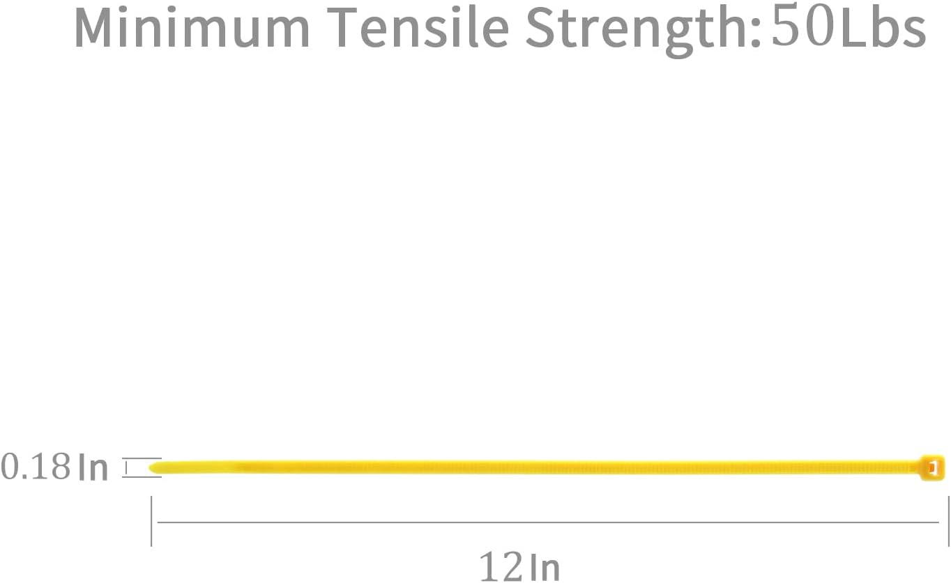 XINGO 1000 PCS Yellow Zip Ties 12 Inch, 60 LBS Tensile Strength, Self-Locking Nylon Plastic Nylon PA66 Wire Ties for Indoor and Outdoor Use