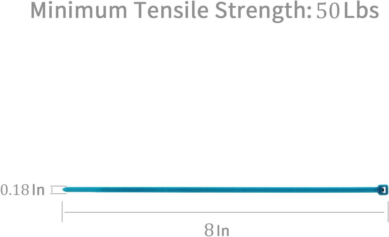 XINGO 1000 PCS Blue Zip Ties 8 Inch, 60 LBS Tensile Strength, Self-Locking Nylon Plastic Nylon PA66 Wire Ties for Indoor and Outdoor Use