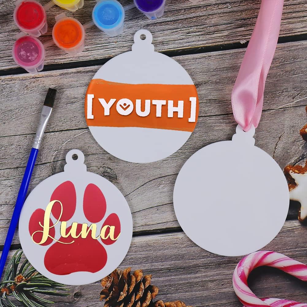 • Size: these clear acrylic measure approx: 4.6 x 4 inch / 11.8 x 10cm diameter, 0.1 inch / 2.5mm thick. Great acrylic Christmas ornaments for kids DIY craft. Lightweight and Proper size to coordinate with your Christmas tree.