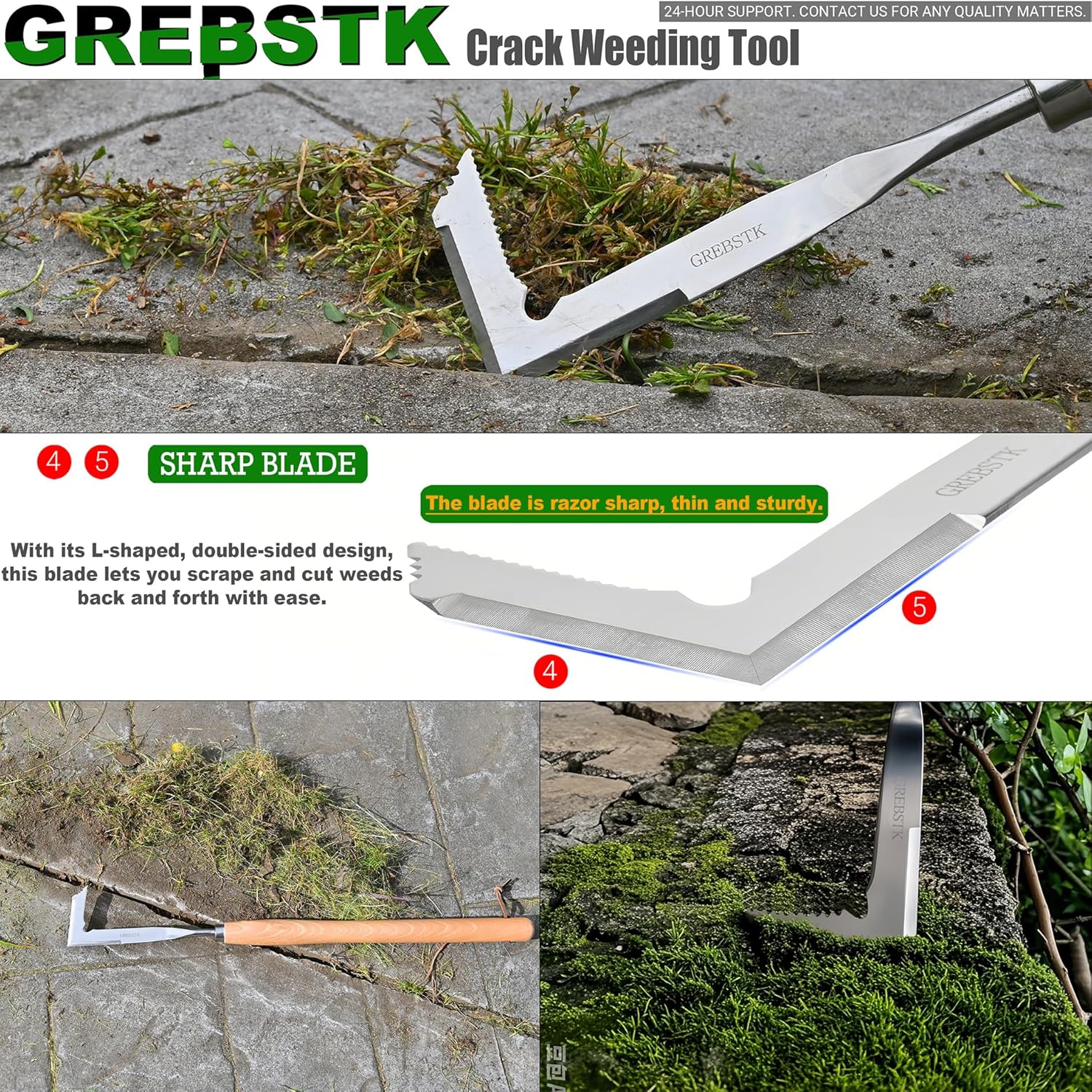 • The GREBSTK brand manual weeder help remove weeds and grass from between patio stones and driveway cracks. Perfect weeder for gardens and especially sidewalk cracks and other tight spaces.