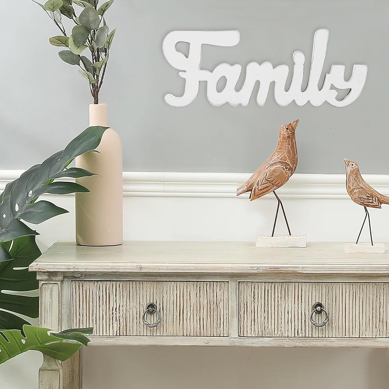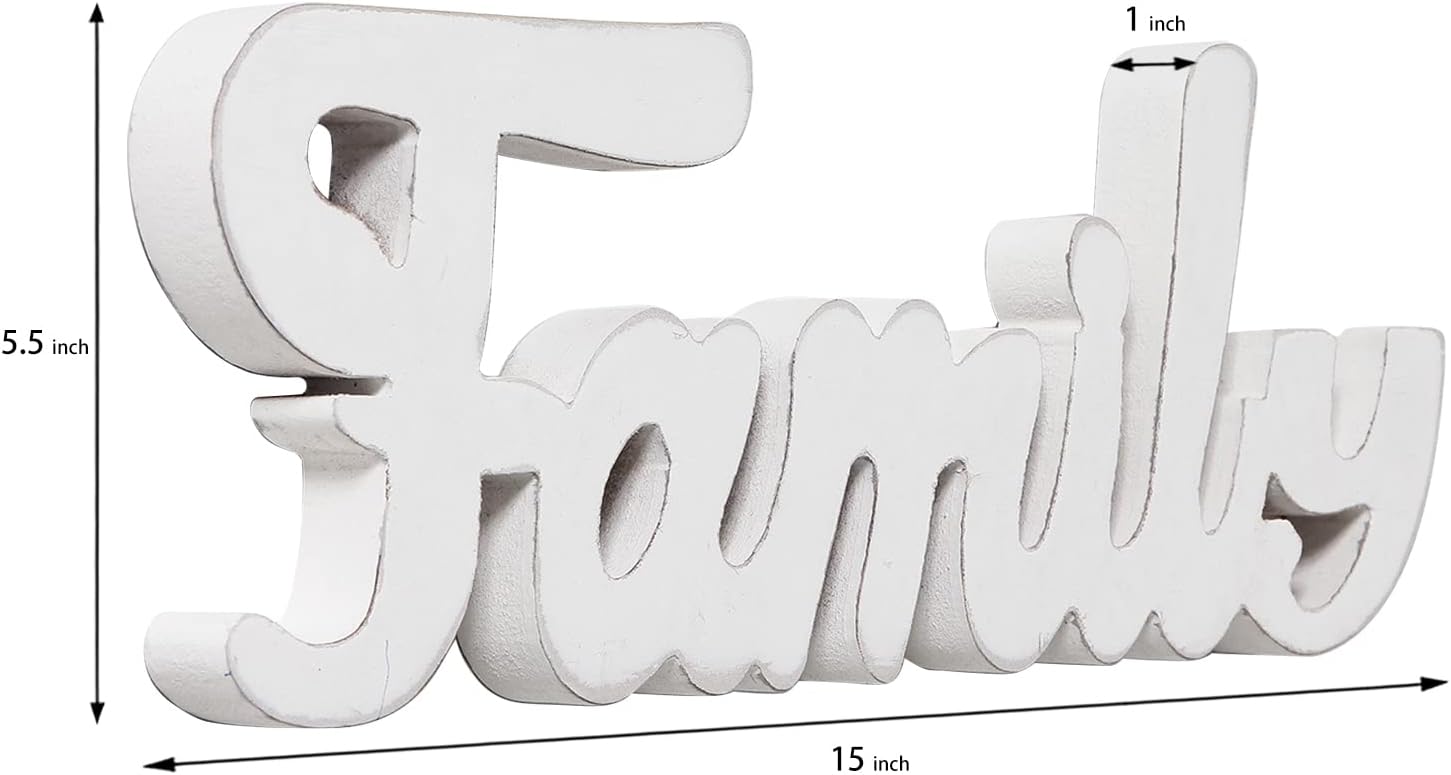• [FARMHOUSE DESIGN] These FAMILY table decor are designed with beautiful forms and won't fade the color easily. Each letter is torched and distressed with white color, which will add a rustic charm to your home. Blend seamlessly with any modern, farmhouse, country, shabby chic or vintage style.