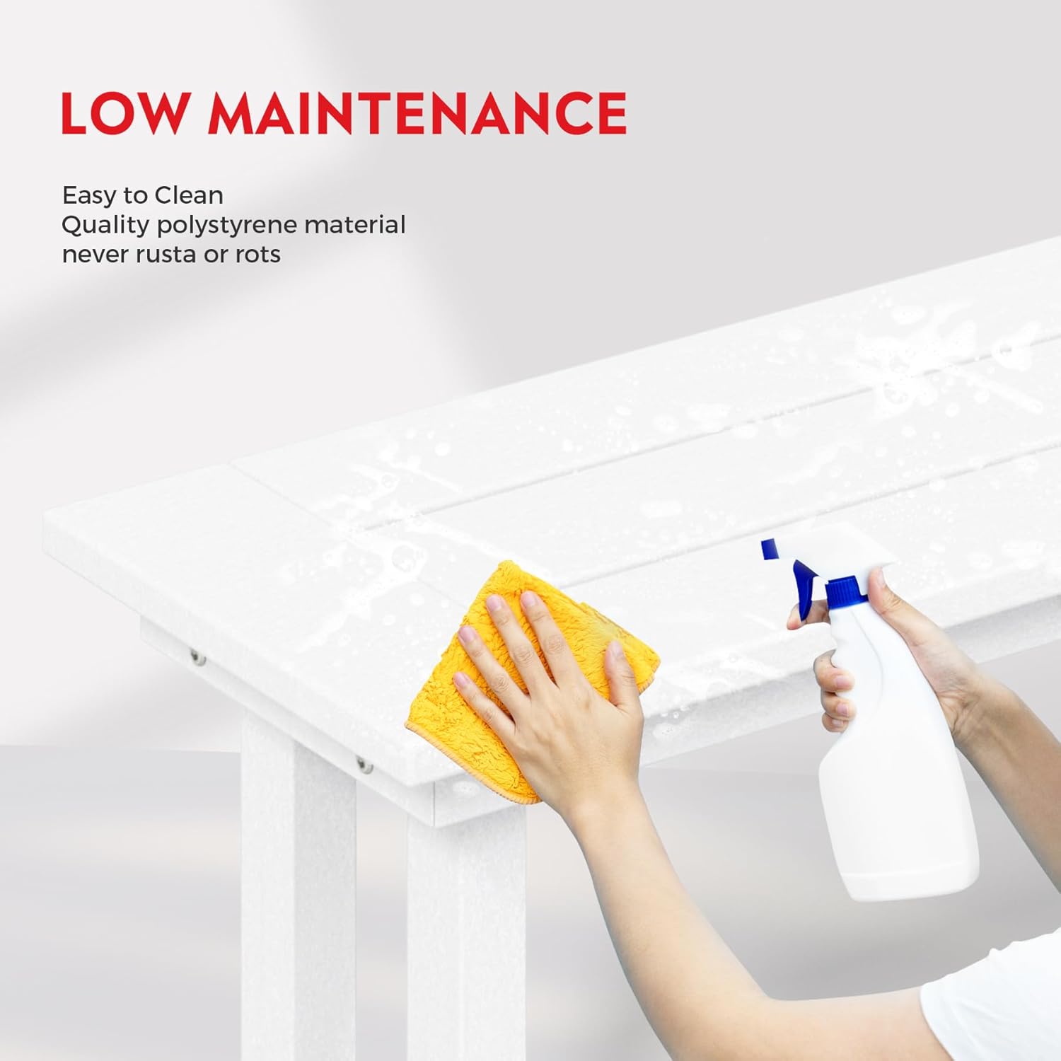 • Easy to Clean - Easily clean this bench with just soap, water, and a soft-bristle brush or sanding sponge, ensuring a pristine look.