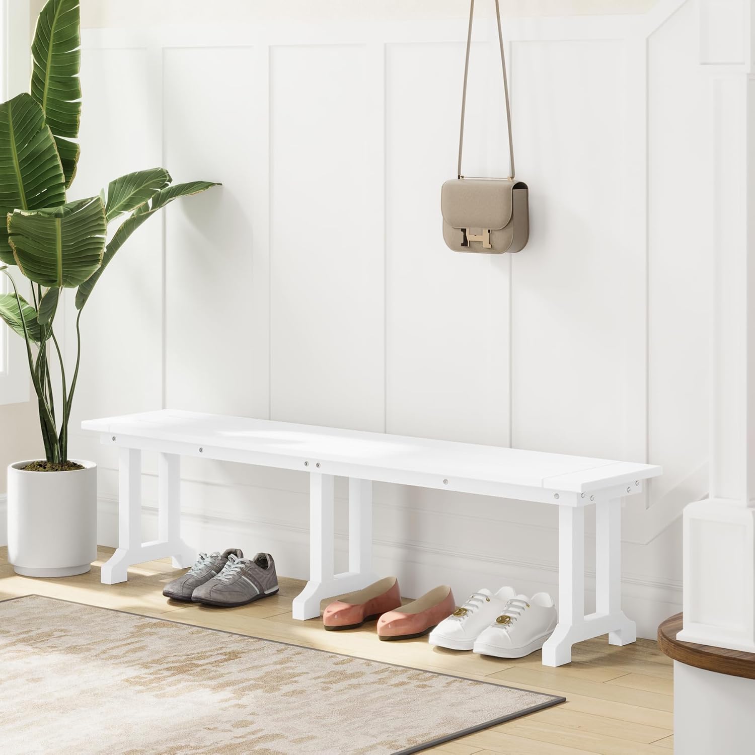 Outdoor Benches Weatherproof, Park Long Bench Poly Lumber Backless for Entryway Front Porch Garden Bench Seat for Patio, White