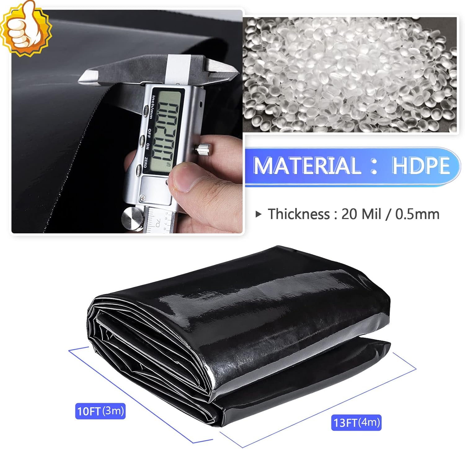 ToLanbbt Pond Liner 10 x 13 Ft, 20 Mil HDPE UV Resistant Preformed Pond Liner Easy Cutting, Underlayment for Fountain, Waterfall, Koi Pondsand Water Garden (Black)