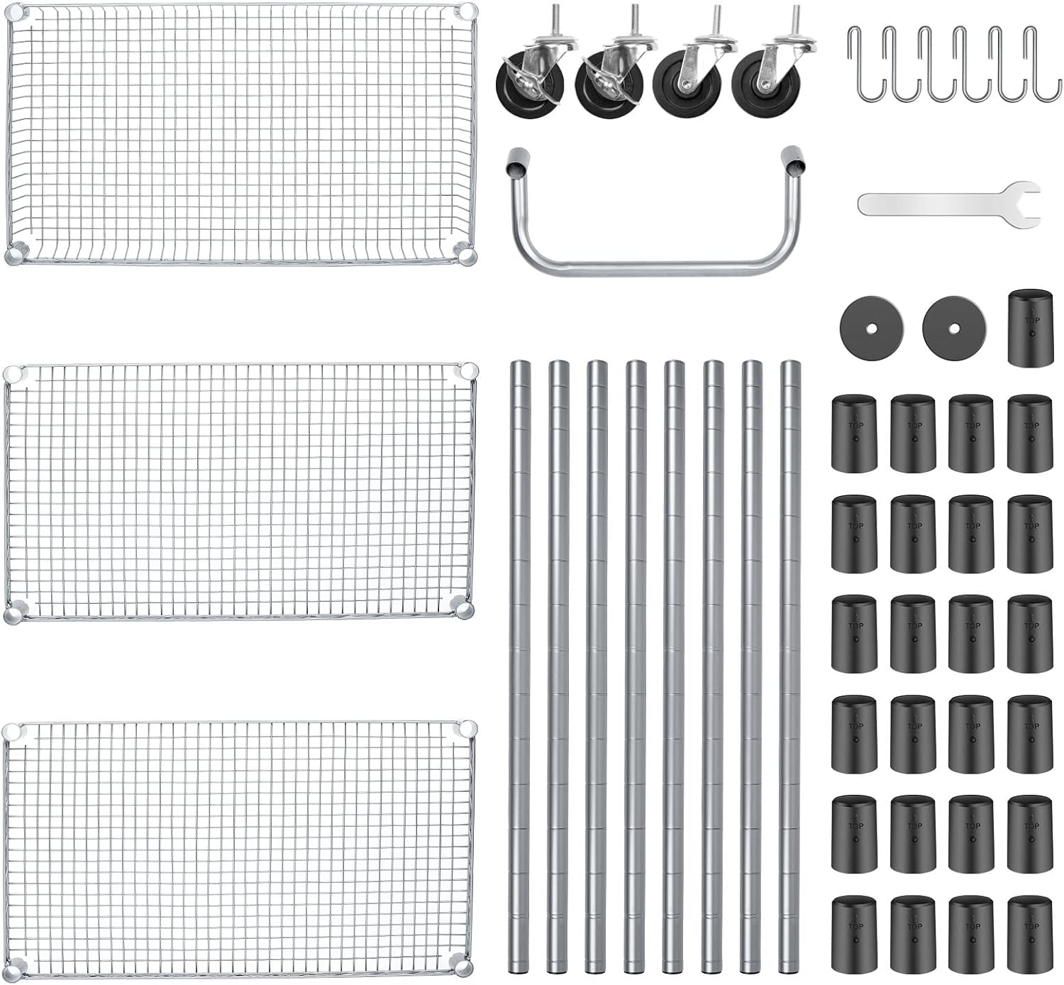 • 990Lbs Capacity & Anti-Rust : WDT This Commercial Grade Rolling Utility Cart is constructed from high quality industrial strength metal, and equipped with 1 inch diameter poles. Can hold up to 990lbs on wheels. This kitchen utility cart metal surface with anti-rust chrome plated, it will not rust make it easy to clean.