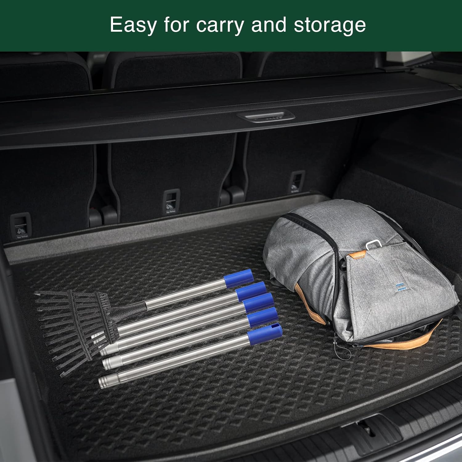 • 11 sturdy metal tines head will help you easily clean all kinds of leaves, pine needles, small debris, grass clippings under hedges, flower beds, chicken coops, narrow areas without damaging plant feeder roots.