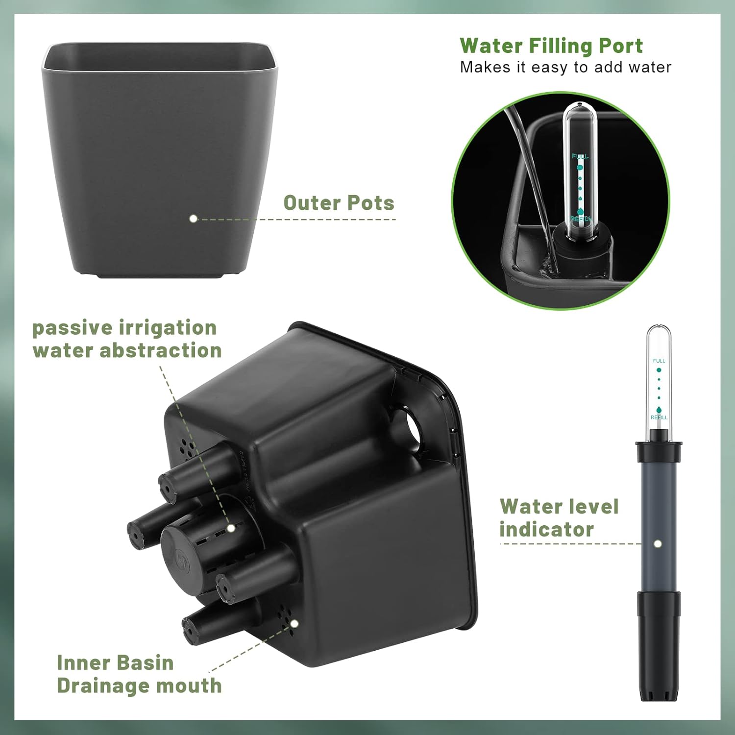 • Color : Grey 5 Inch Self Watering Planter Pack of 3
