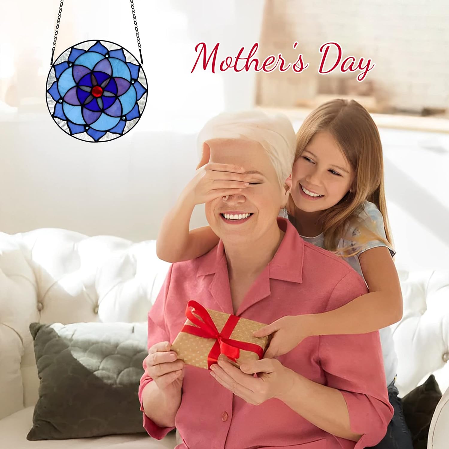 Flower of Life Decor Stained Glass Window Hanging,Sacred Geometry Spiritual Gift for Mom on Thanksgiving Day,Christmas,Mother's Day