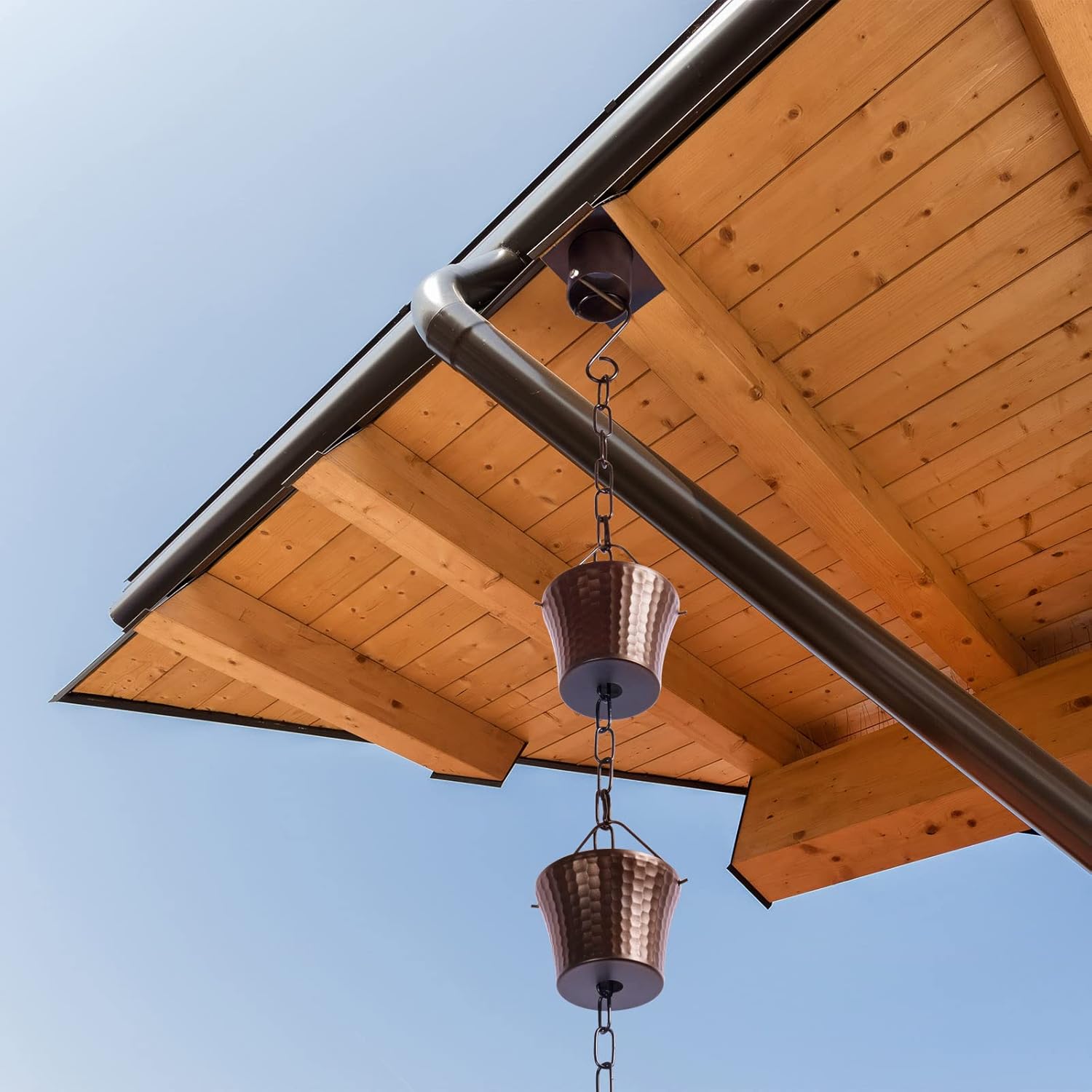 • Classic Looking Design:The standard length of the gutter rain chains is 8.5 FT. The rain chain is made of larger size of 14 CUP,combined with each other, so beautiful that water flows down each cup on the rain chains, creating a beautiful water feature.(✅❗NOTE:✅Single cup siez 3.95 inch wide, 3 inch high cylindrical cups and chains)