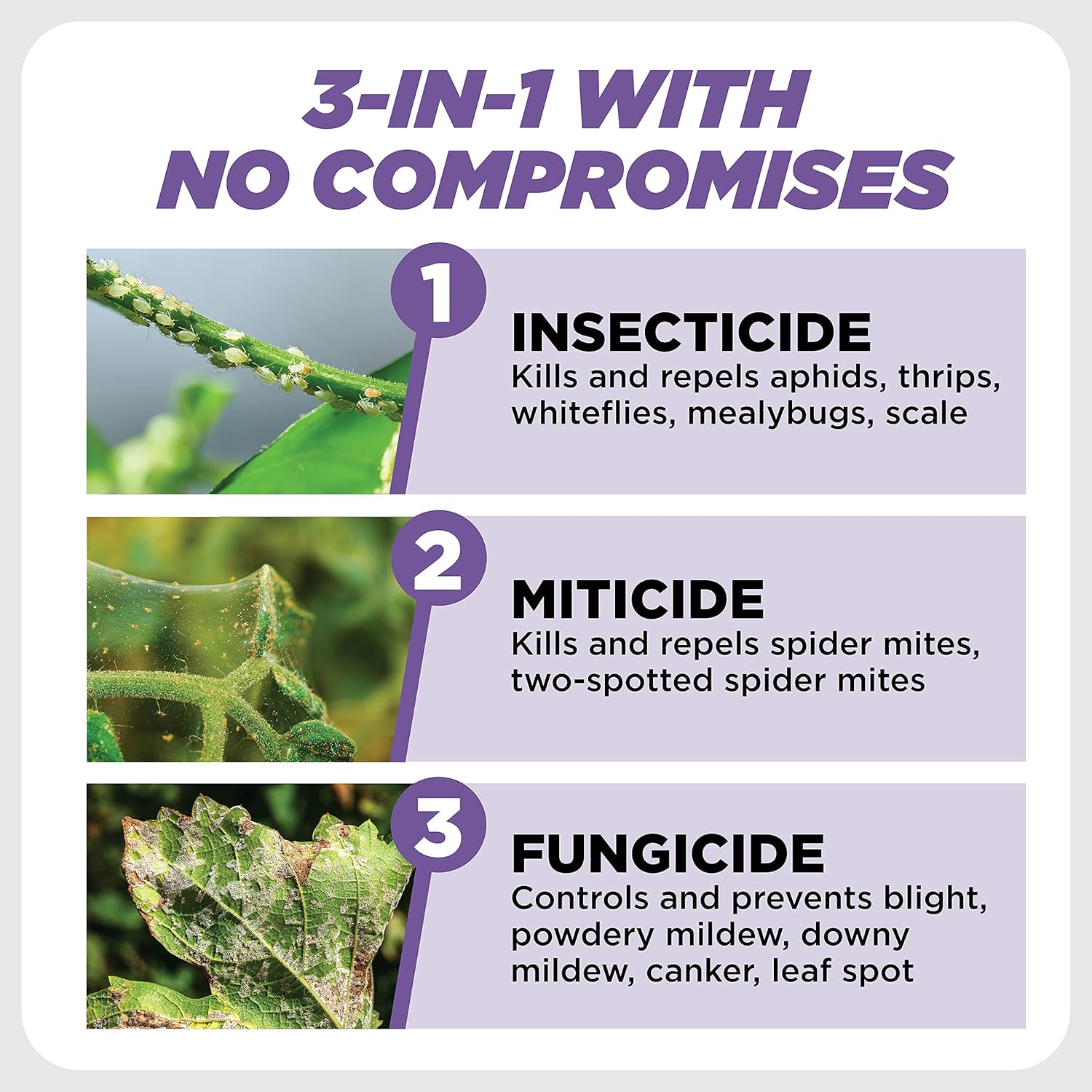 • 3-IN-1 GARDEN SPRAY - Earth’s Ally 3-in-1 Plant Spray is an insecticide, miticide and fungicide. The formula effectively controls soft-bodied insects and common plant diseases with a synergistic blend of botanical oils.