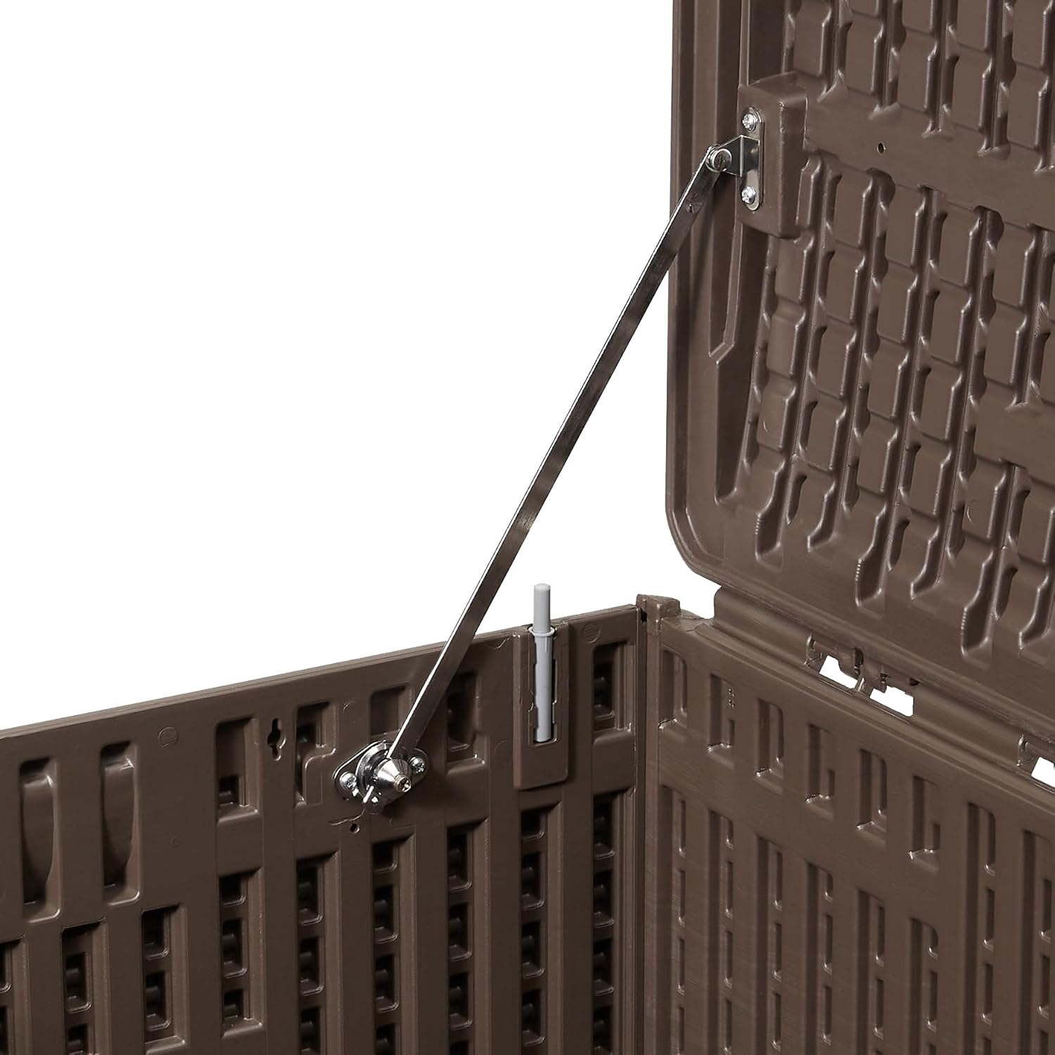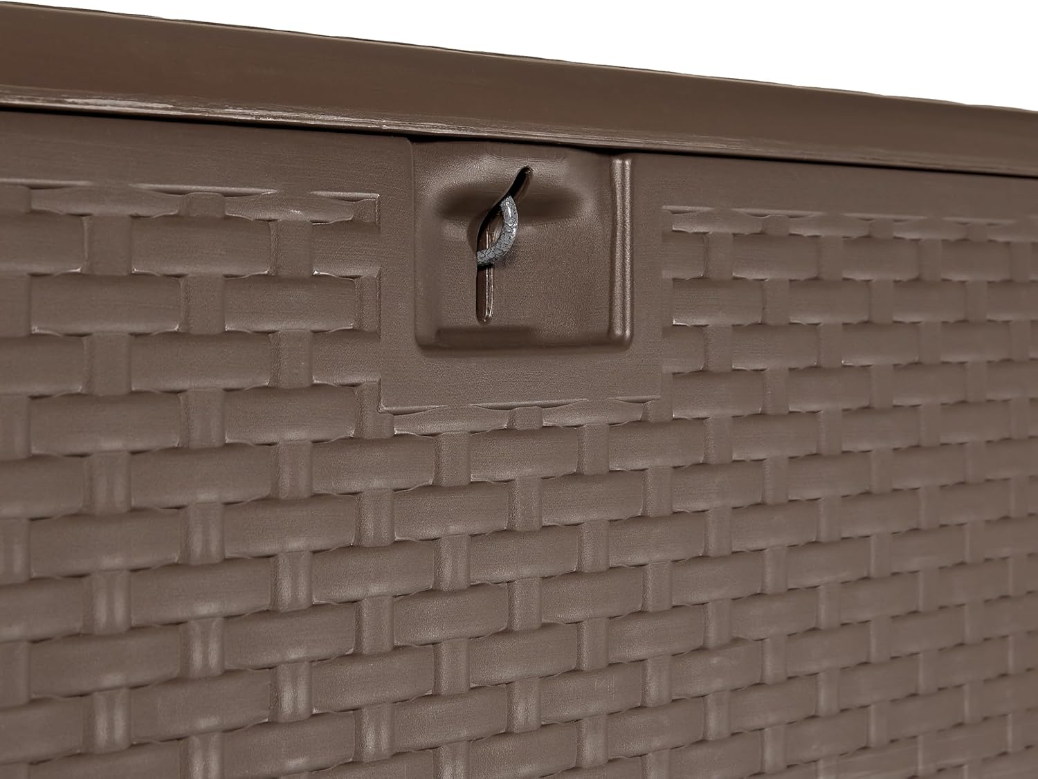 • ELEGANT STYLE: The charming wicker pattern in a brown finish complements various outdoor decors, adding a touch of sophistication to your patio storage, garden, or backyard area