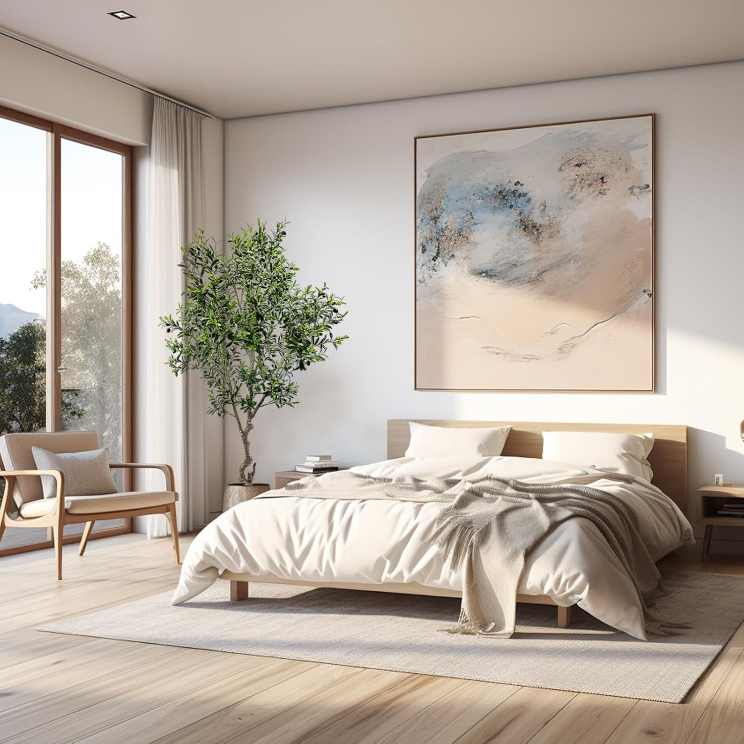 • 4. The olive tree is made of eco-friendly PE fabric and sturdy wire inside, no smell and no watering required. It will not fade when placed indoors and is baby and pet safe.