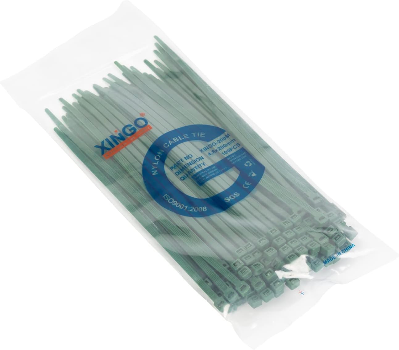 XINGO 100PCS Cable Zip Ties Heavy Duty, Premium Nylon Plastic Wire Ties with 50 Pounds Tensile Strength, Self-Locking Black Nylon Zip Ties for Indoor and Outdoor (8 inch, Dark Green)