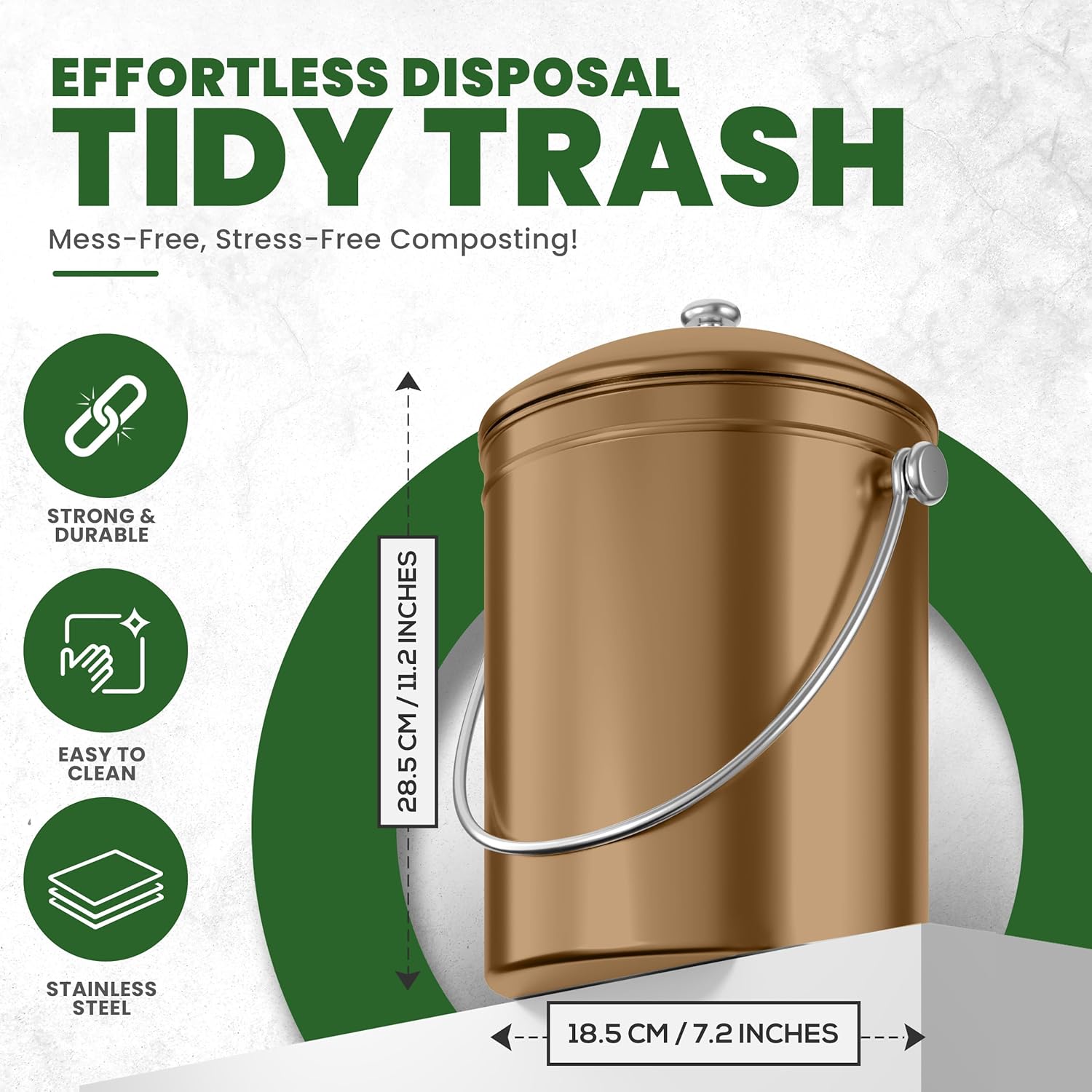 Utopia Kitchen Compost Bin for Kitchen Countertop, 1.3 Gallon Compost Bucket for Kitchen with Lid, Includes 1 Spare Charcoal Filter (Bronze)