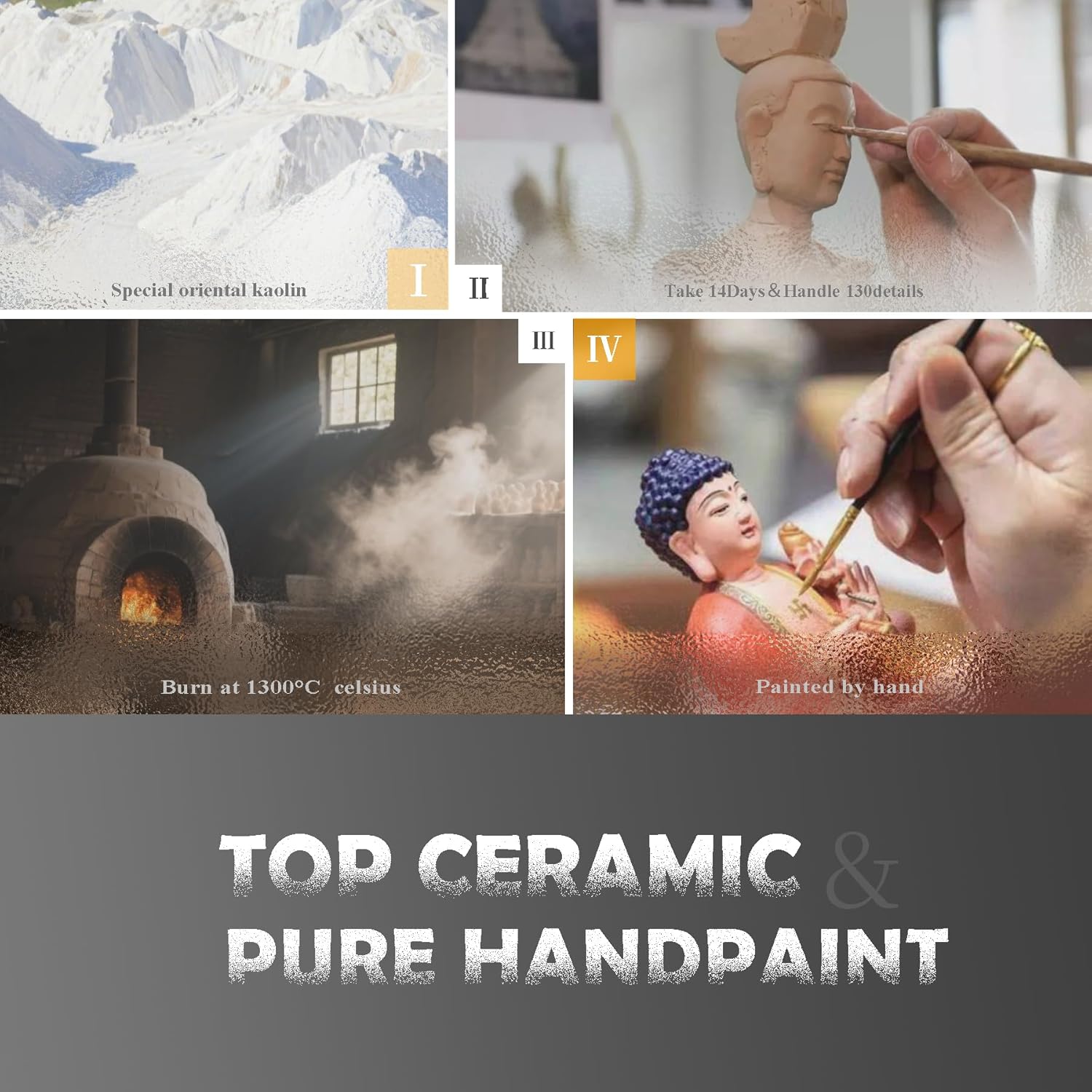• 2.✅ 𝐓𝐨𝐩 𝐂𝐞𝐫𝐚𝐦𝐢𝐜 --- Handcrafted by top ceramic masters. Made of a special oriental soil. White as milk or snow. Color such as sheep fat, white jade, scallion white, without any impurities. 🧘 Geographical indication products, enjoyed the reputation of ceramic pearl. Perfect ceramic buddha statue indoor, buddha statue outdoor, buddha statues for home. 🎁
