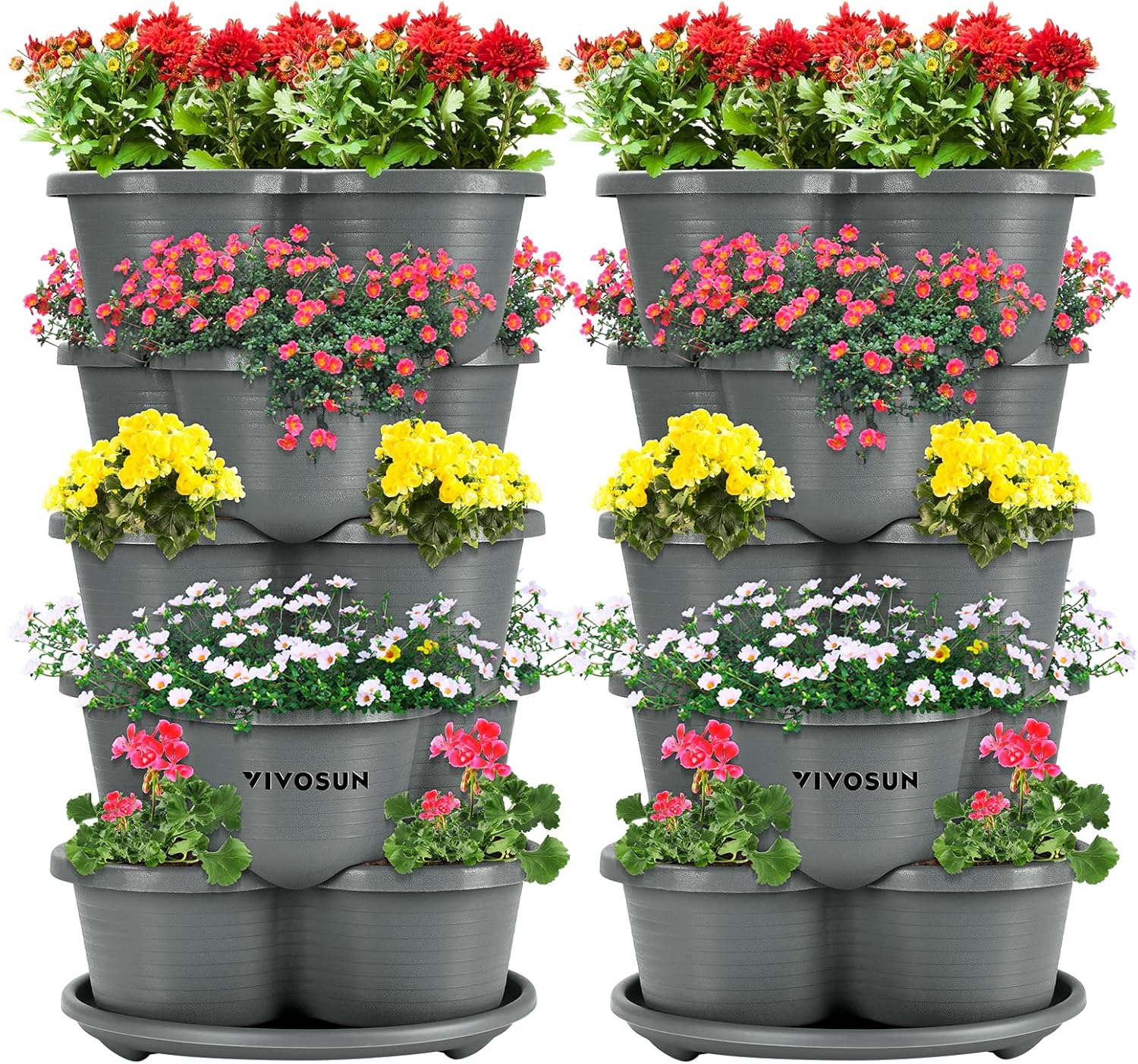 VIVOSUN 2-Pack 5 Tier Vertical Gardening Stackable Planter for Strawberries, Flowers, Herbs, Vegetables, Grey