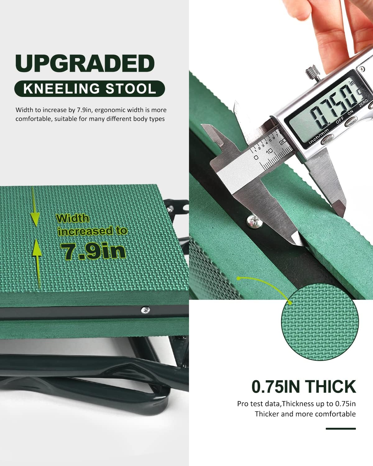 • 【The Garden Bench for Kneeling and Sitting You Need!】: Through feedback from more gardening enthusiasts, we know what kind of garden bench is the most suitable, so this kneeling stool was born. Tested in different scenarios, it is the most ergonomically designed, whether the width of stool surface or the thickness of EVA, this stool can better protect the knees of garden lovers, especially suitable for the elderly or those who need heavy duty kneeling bench crowd, because they need a more firm and comfortable gardening kneeling stool.