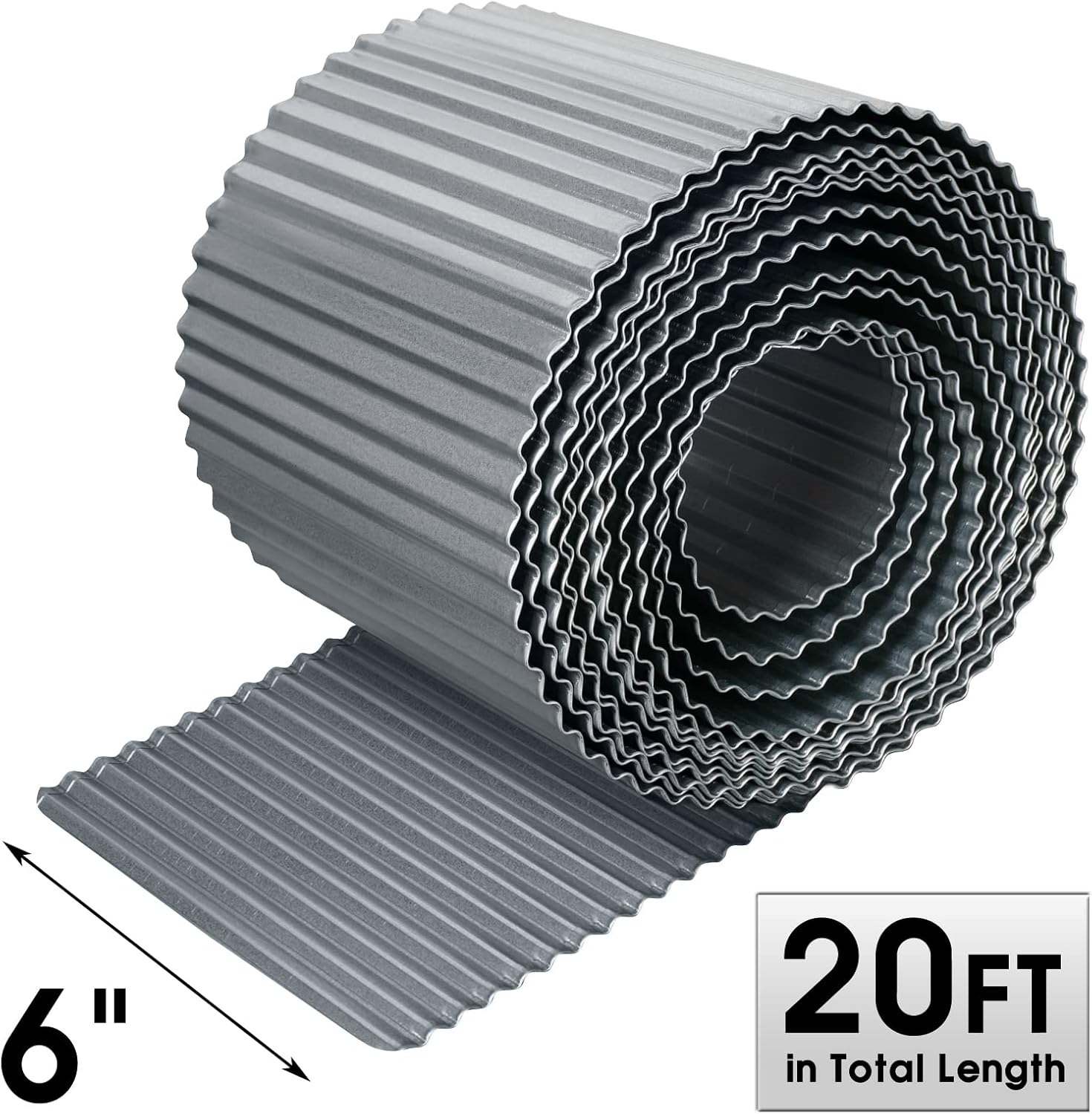 • CLEAN LOOKING: New galvanized steel, light silver, semi-sheen. This metal corrugated garden edging with hemmed edges can create a raised layer of mulch, rocks or soil and provides style and safety for your garden, lawn and flower beds.
