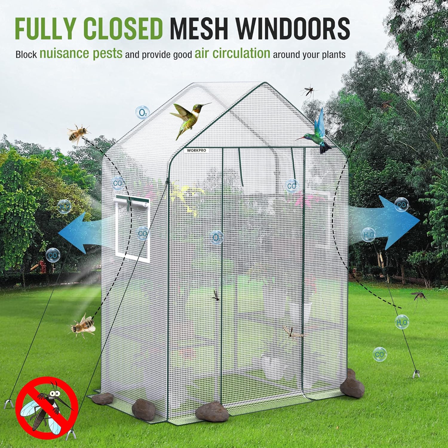 • Beautify Your Indoor Outdoor Landscape: The WORKPRO greenhouse garden kit has the versatility and effectiveness to work well. No need to worry about damaging your beloved plants due to unexpected cold snaps or heavy rain as our greenhouse kit will be battling with snow, frost, and heavy storms, so grow your mini greenhouse shelves with sprouting plants and blooming flowers in your backyard, balcony, or the basement.