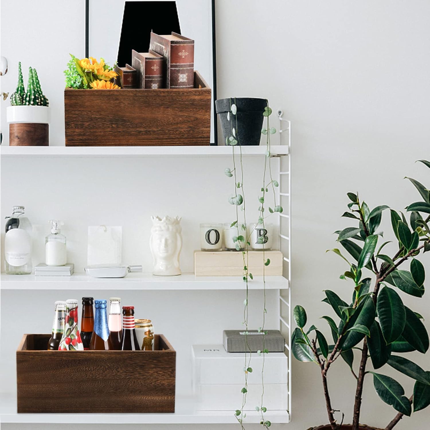 • Sturdy Construction: Our wooden storage crates are made of premium quality natural wood, sturdy but lightweight, the inner side four corners of each box are thickened with one wooden strips to avoid cracking, can give you long-term service
