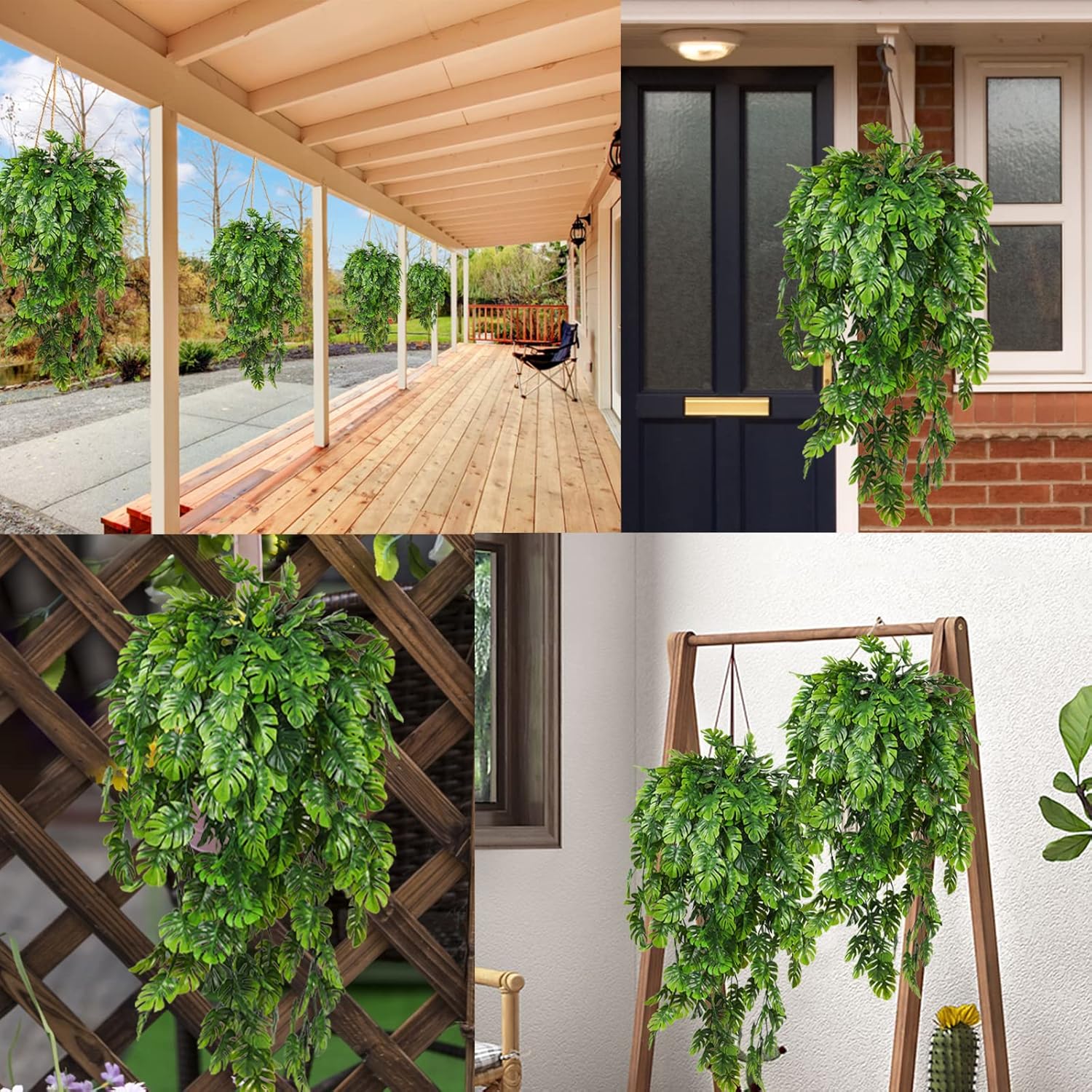 • Hanging Monstera Plant Garlands:The faux ivy vine monstera leaf has a clear texture, with high degree of simulation, strong stems with iron wire inside, and can be bent into any shape. Add landscapes to your patio or balcony indefinitely throughout the year