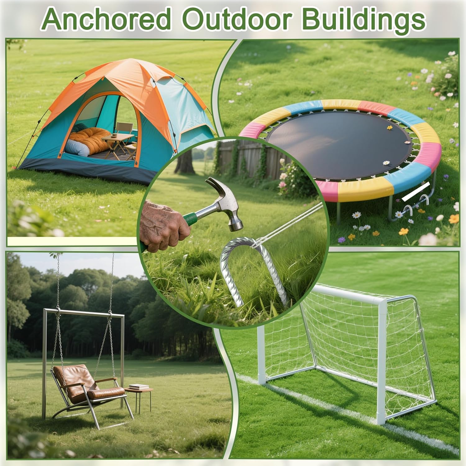 • WIDE APPLICATION: The main application scenarios of tent stakes heavy duty are garden farms, festival decoration, outdoor construction, and fence reinforcement. Such as fixed chicken coops, inflatable decorative Santa , green house, tents, trampolines, carports, swings , and the bottom of chain fences to prevent pets from running out or wild animals from entering