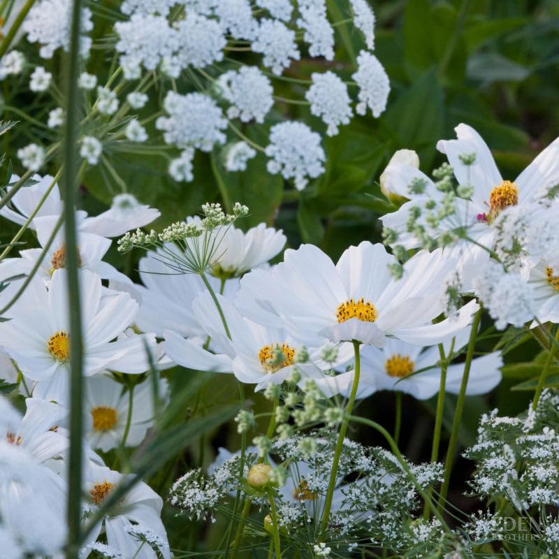 • Cosmos Purity (Cosmos bipinnatus), Bishop's Flower (Ammi majus),