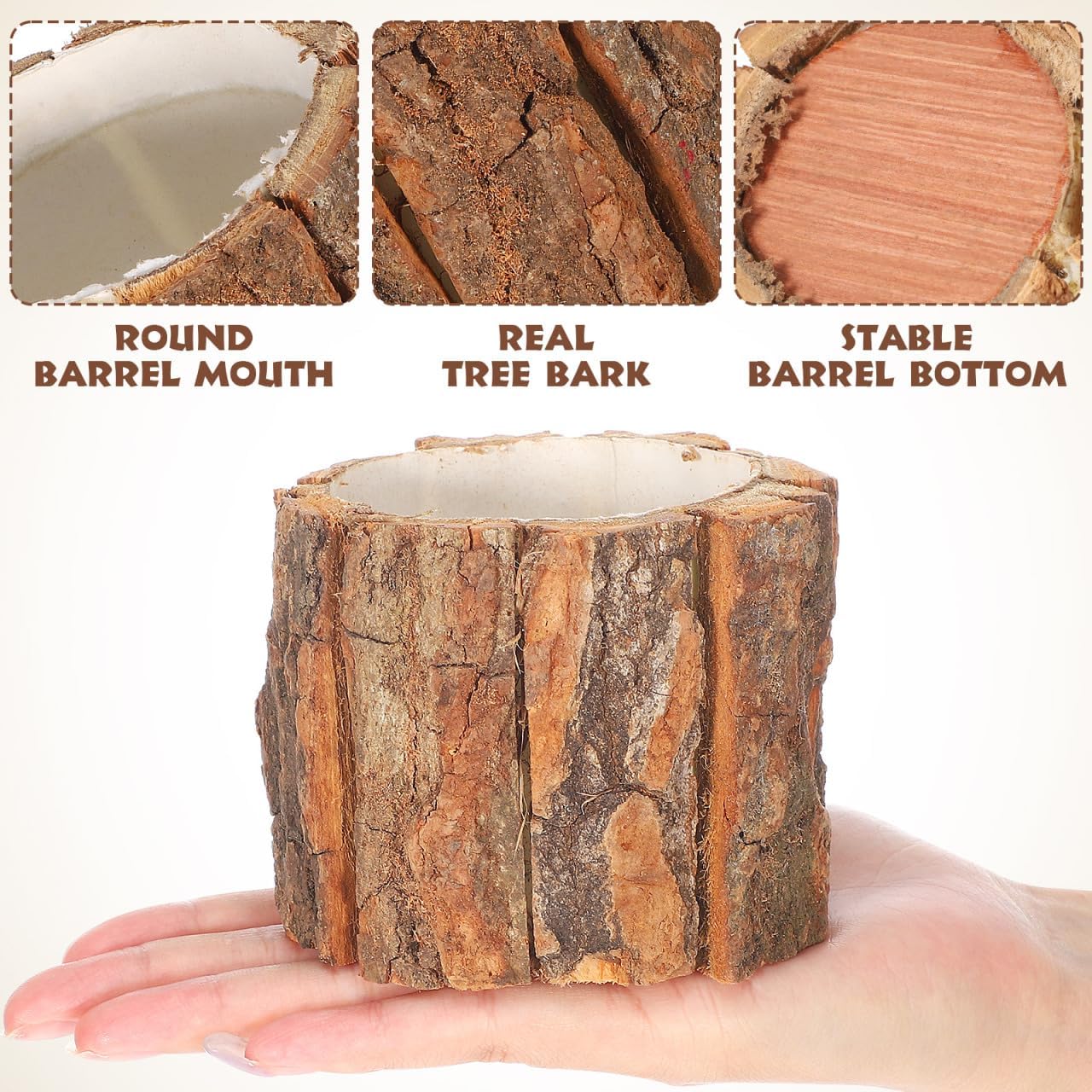 • Package includes - You will receive 3pcs of light brown wood bark flower pots, each measuring 3.54*3.54*3.14 inches, perfect for various decorative uses