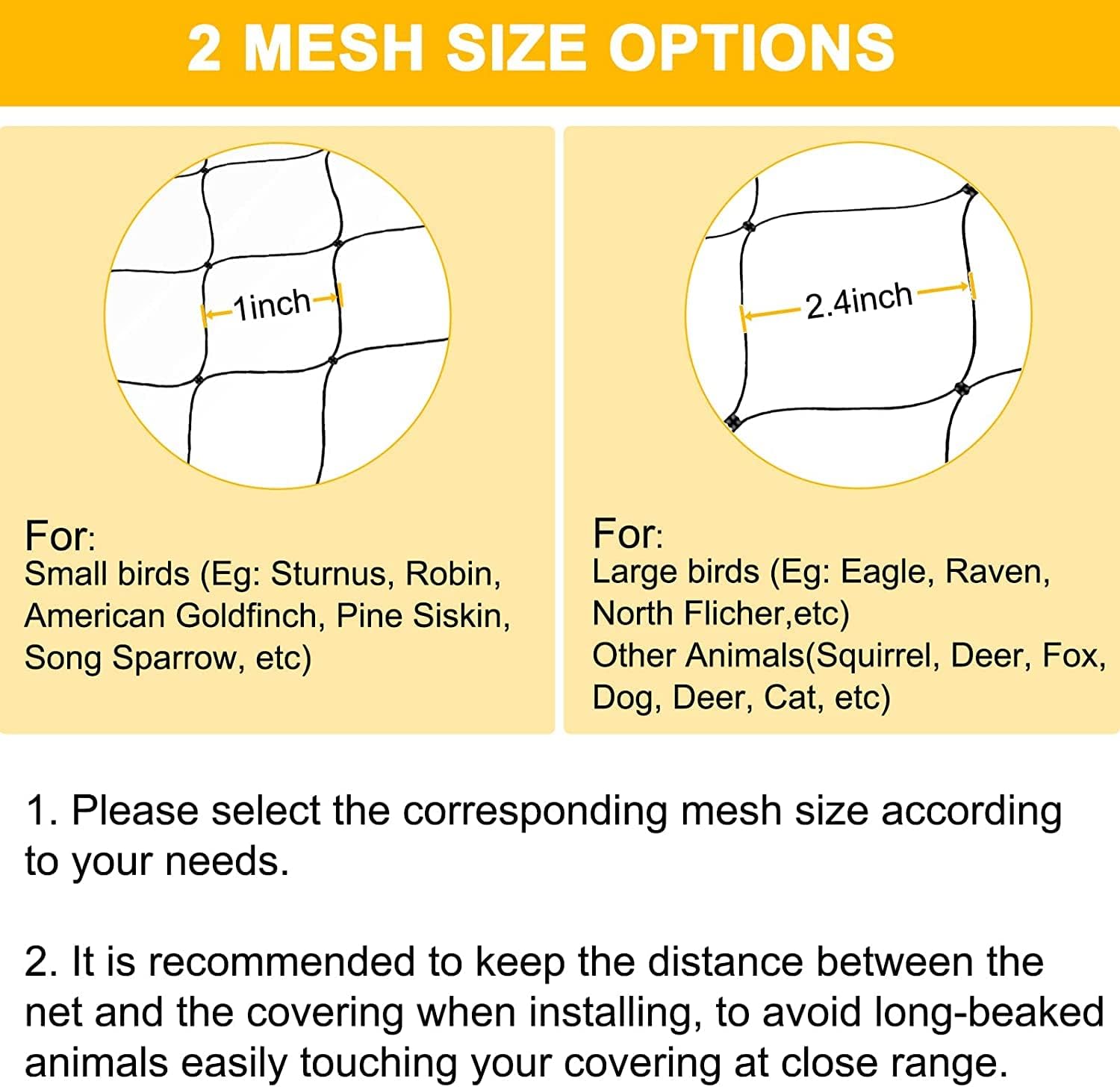 • 【Effective Protection】Our 1 inch mesh netting provides maximum protection without harming birds and small animals or interfering with plant growth. Bird netting as an outdoor cover like a fence, bird proof barrier is a physical barrier, which is wildlife friendly stops animals from damaging garden areas.