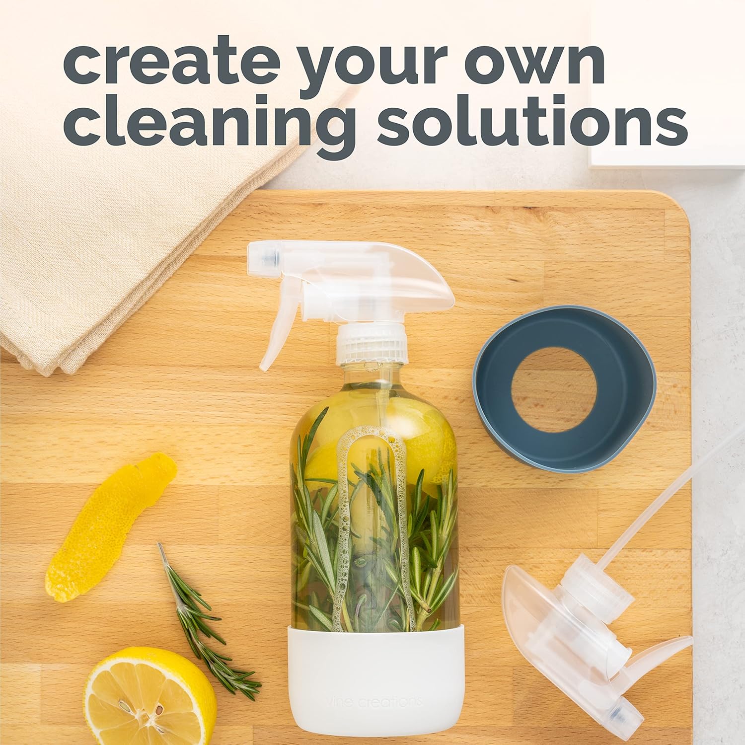 • UNRIVALED CONSTRUCTION - Set of 2 premium fortified glass cleaning bottles. 16 Oz empty glass bottles. Vine Creations refillable spray bottle for cleaning are Lead-free.