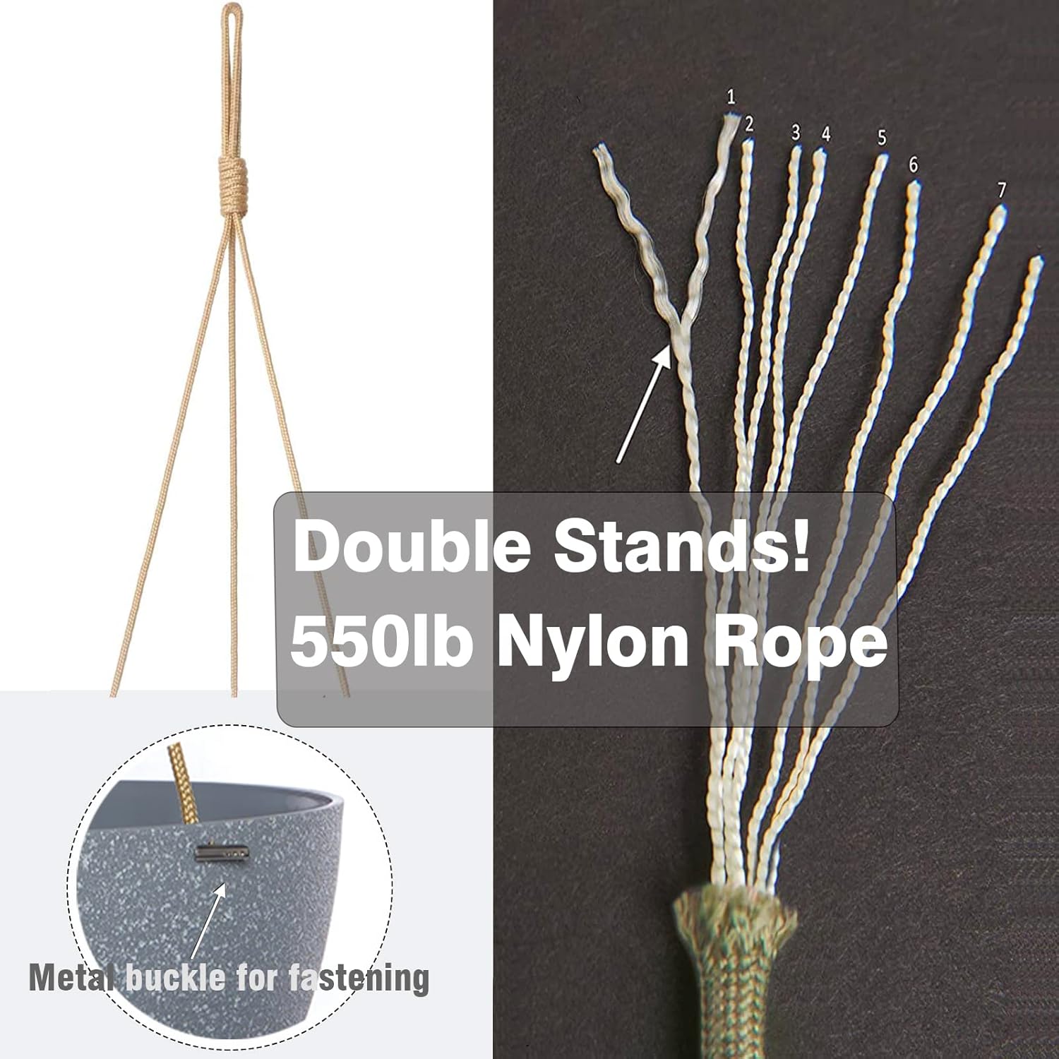 • [Adjustable Hanging Rope] Crafted from durable plastic with adjustable high-strength nylon rope, the pots are lightweight yet sturdy for easy transport. The hanging rope is made of sturdy nylon rope with excellent elasticity, you can freely adjust the height you want, the full nylon construction provides abrasion resistance, it can easily hang plants weighing up to 20 pounds without taking up any floor space, and take your plants to new heights.