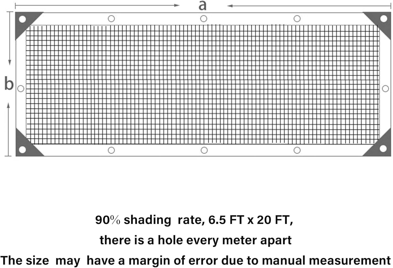 • 90% Shade Rate: Our Shade Cloth can resist rays and most sunlight while air can still flow through so as to create a comfortable cool and shaded place for people or plants.It blocks 90% of the sunshine and bring 10% the shadow, 10% of the sunshine can through it.