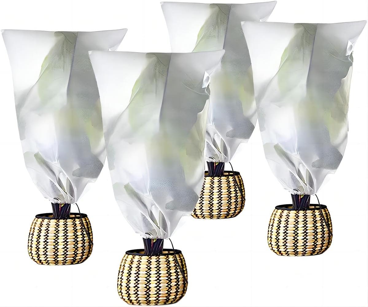 Agfabric Plant Covers Freeze Protection 48"x55" 0.9oz Plant Frost Protection Covers Plant Protection Winter Cover Drawstring Bags Cold Frost Blanket,White,4 Pack