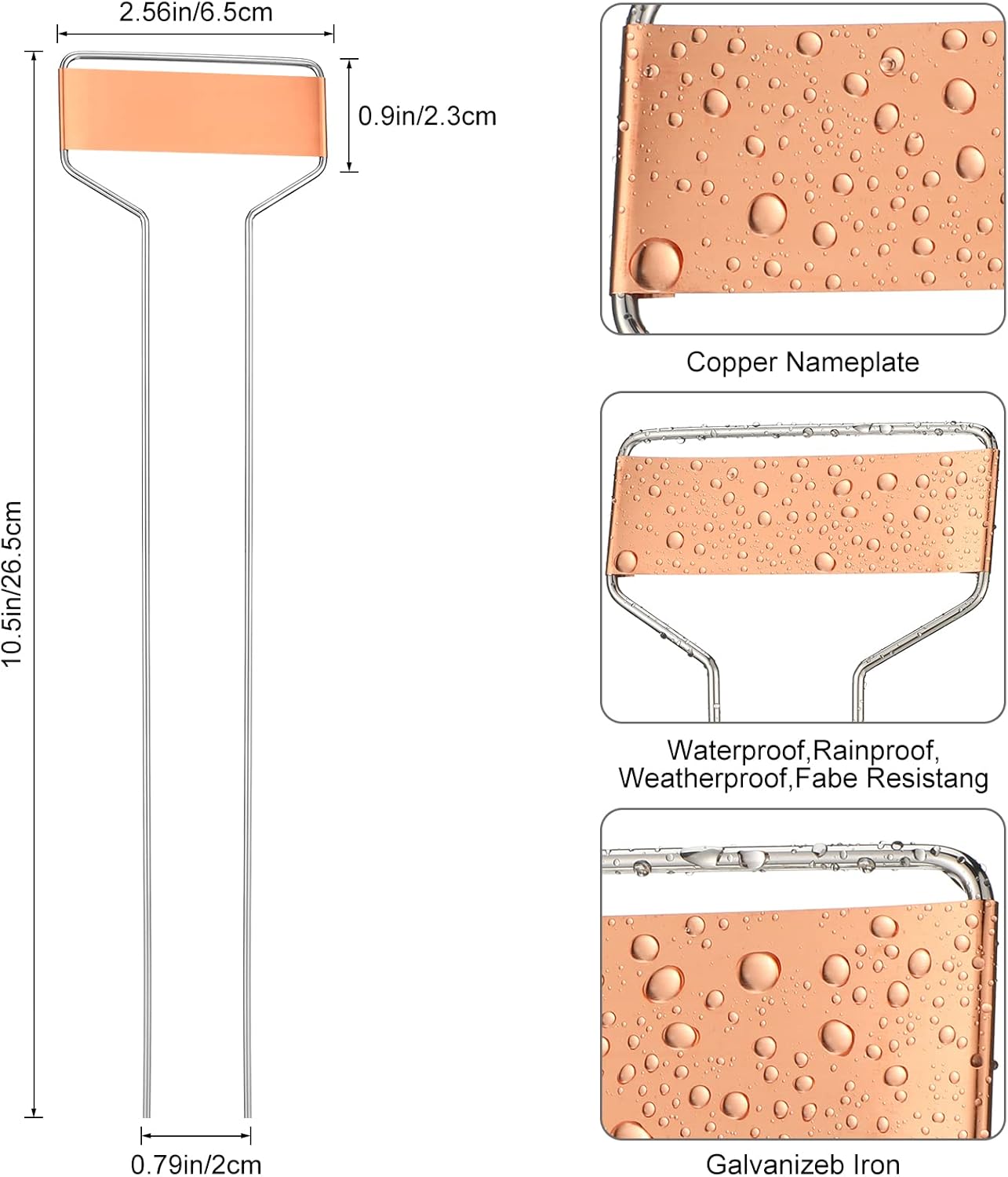 • Reliable Material to Use: the plant tags are mainly made of copper and stainless steel, strong and reliable, not easy to fade or deform, with smooth surface, you can write the names on it, then insert it into the soil or flowerpot; The 2 foot design makes it stand steady, easy to insert into the soil and place in different corners easily