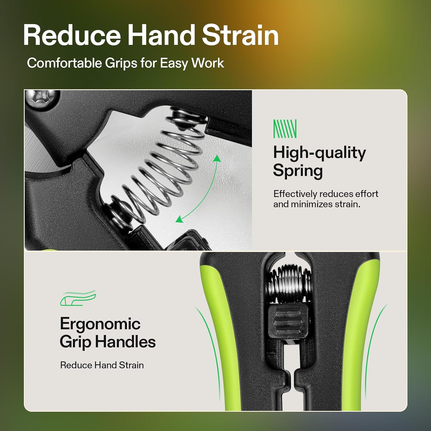 • Secure, Easy to Lock: These micro tip snips feature a safe and secure sideways locking mechanism that keeps your blades protected and closed when not in use; The design of these pruning snips are perfect to use whether you are right or left handed with ease