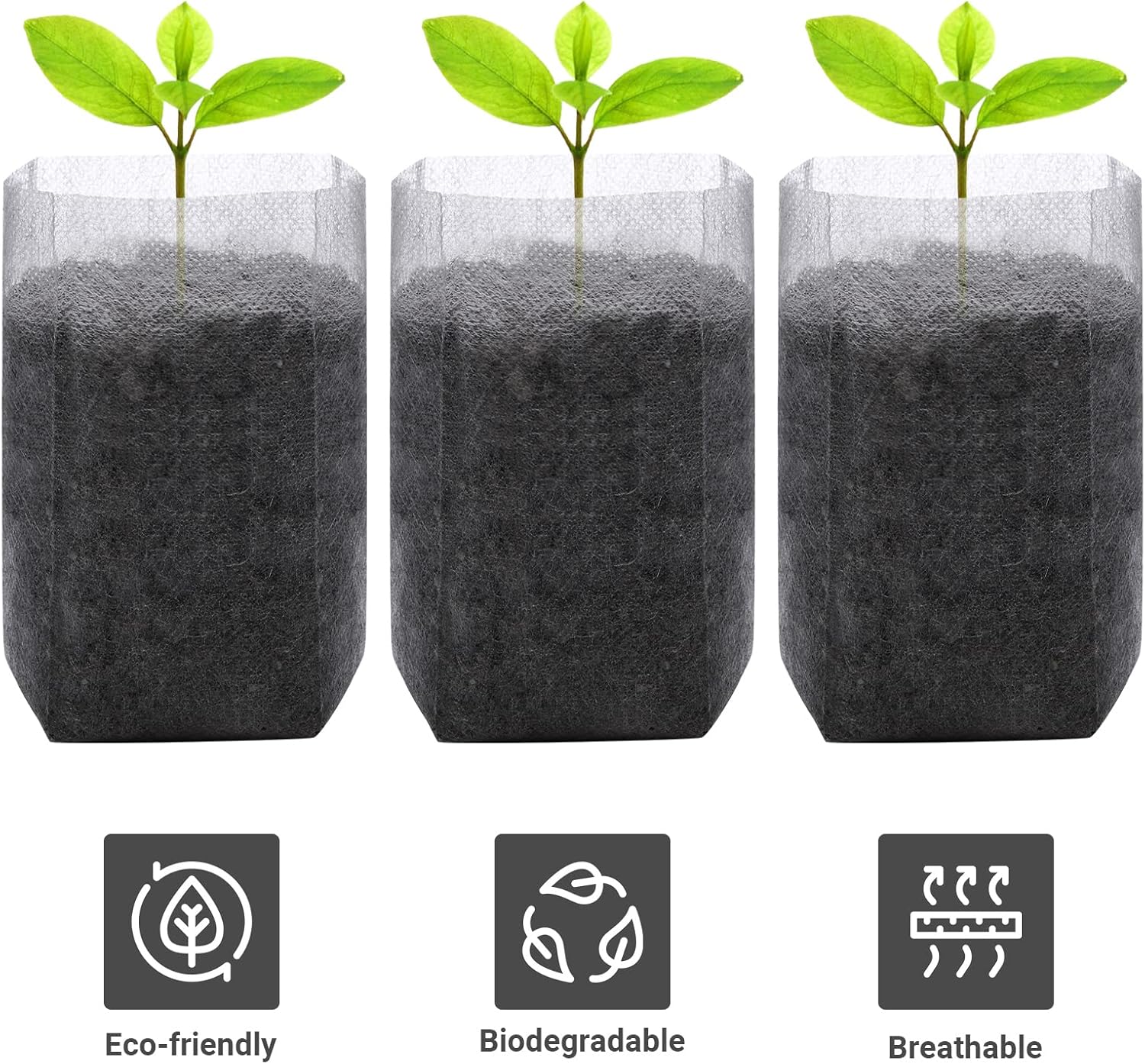 • 【HIGH SEEDING SURVIVAL RATE】The biodegradable plant bags has a small hole design, good drainage, air permeability, nutrient and moisture can be absorbed easily; biodegradable, don't need to remove the bag when transplanting, increase seedling survival rate.
