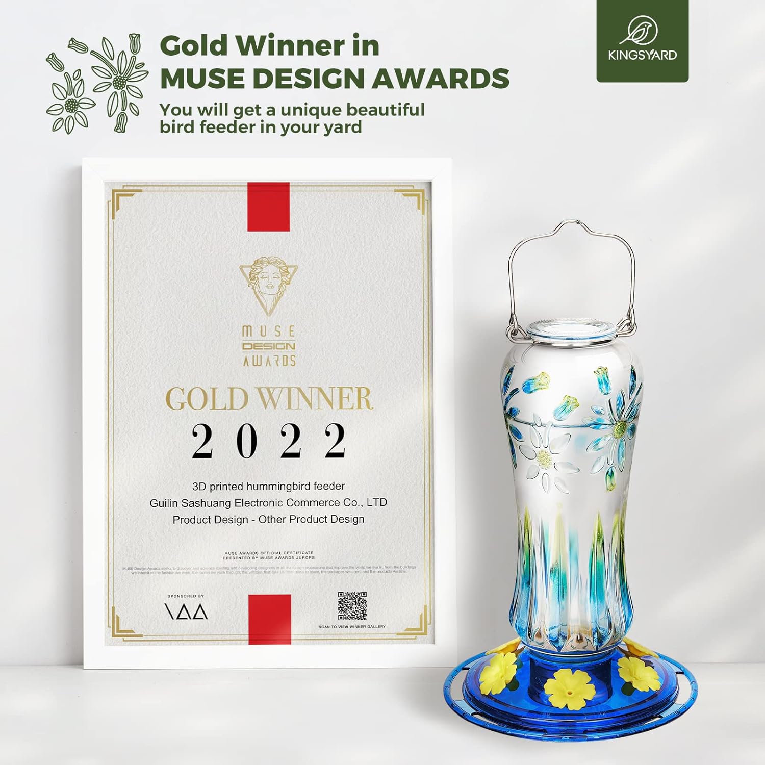 • 【GOLD DESIGN AWARDS】This Kingsyard Hummingbird Feeder is Gold Winner in MUSE DESIGN AWARDS; A sweet gift for parents, children and friends; A bird watching gifts for people who love birds; A unique gifts for Birthday, Mother's Day, Thanksgiving and Christmas