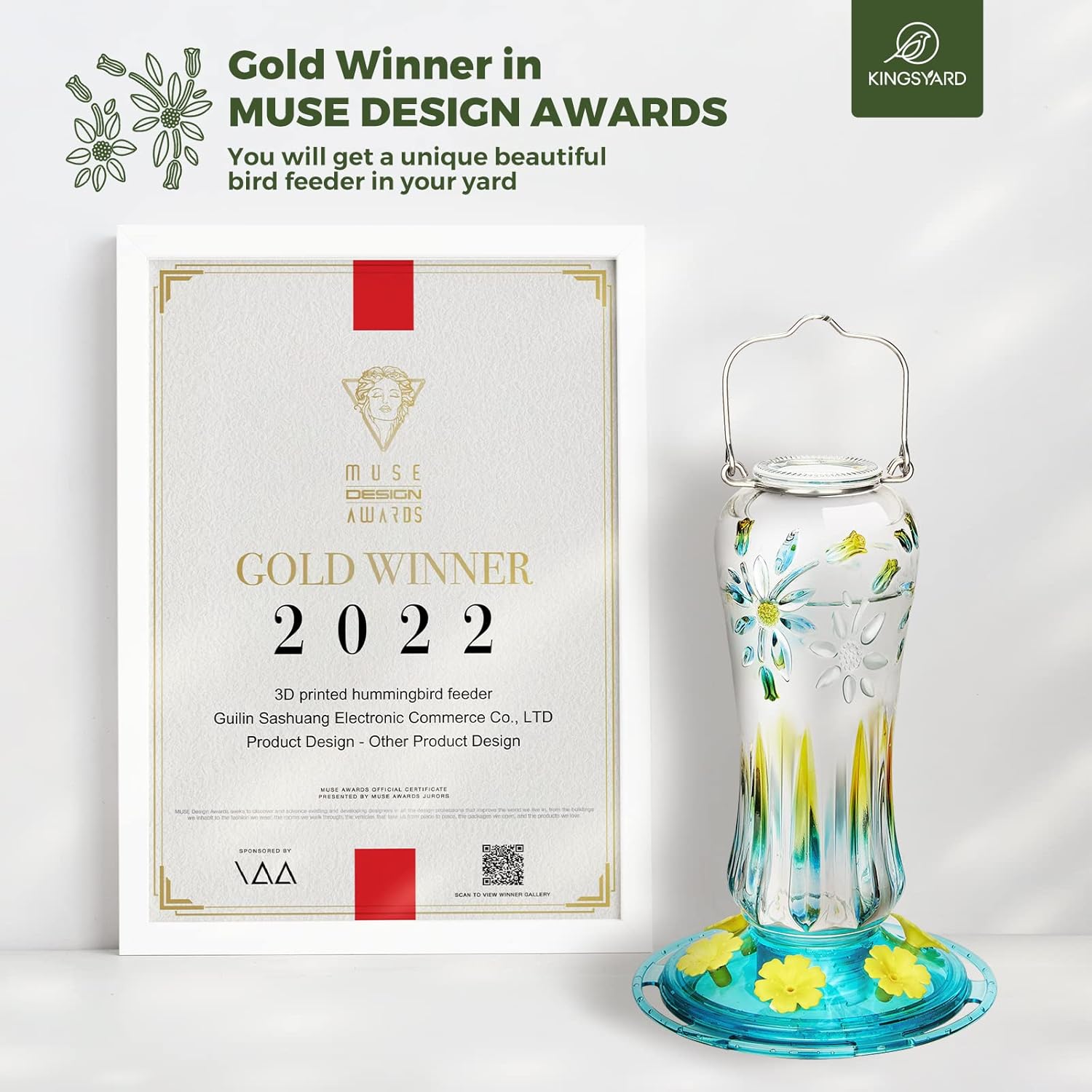 • 【GOLD DESIGN AWARDS】This Kingsyard Hummingbird Feeder is Gold Winner in MUSE DESIGN AWARDS; A sweet gift for parents, children and friends; A bird watching gifts for people who love birds; A unique gifts for Birthday, Mother's Day, Thanksgiving and Christmas