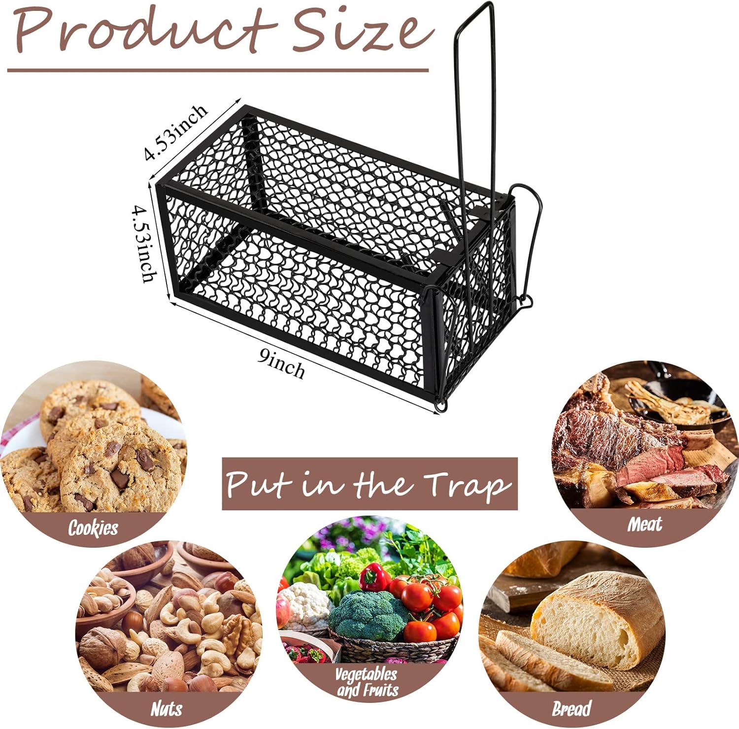 • Appropriate Size: the size of the humane rat trap is 9 x 4.5 x 4.5 inches/ 23 x 11.5 x 11.5 cm, the right size can effectively catch small mice, voles, hamsters, you can put it in the corner, it will not take up too much space