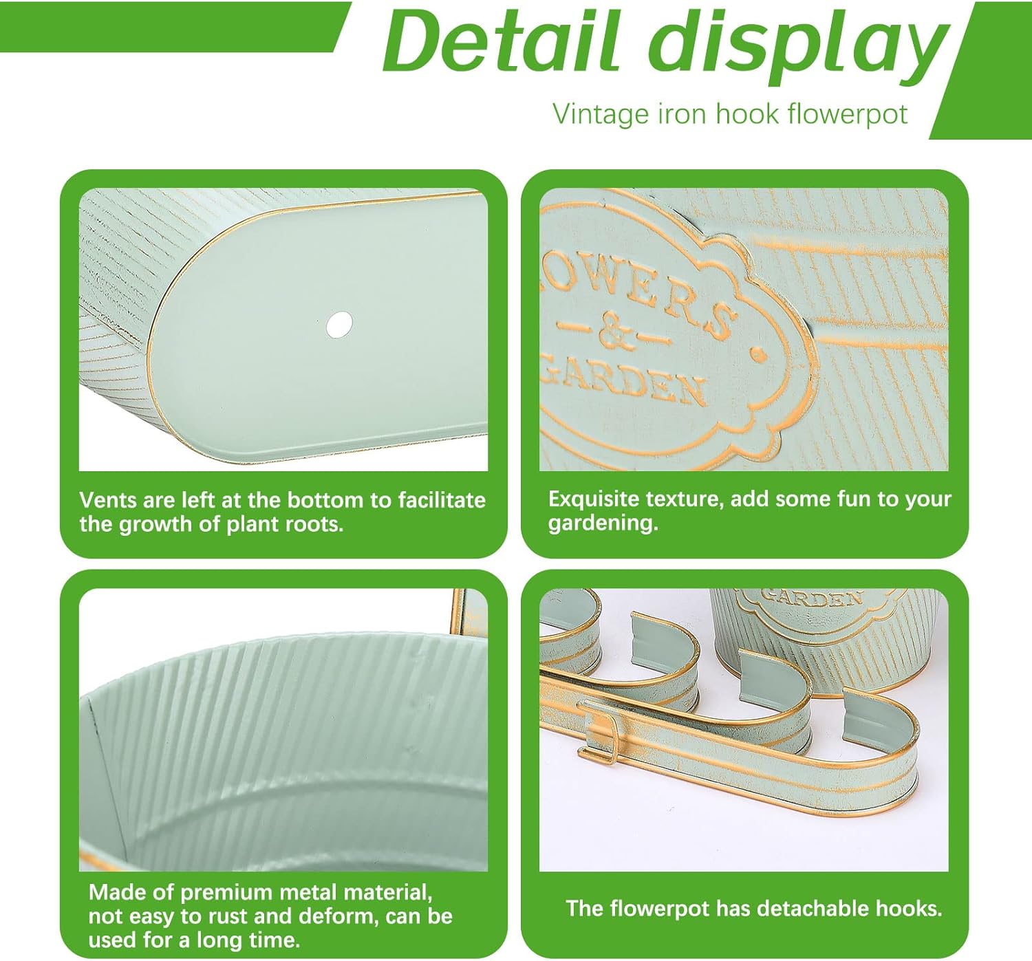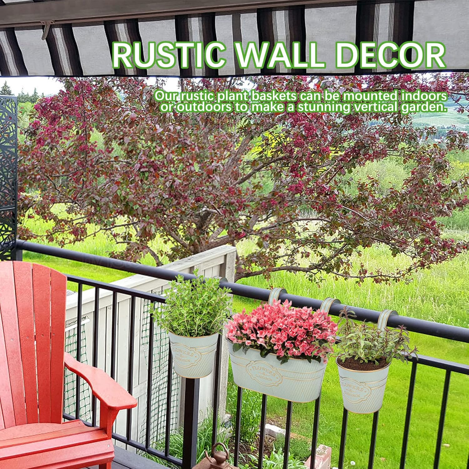 PerGar Vintage Metal Iron Wall Hanging Flower Pots, Rustic Planter Bucket Herb Flower Plant Holder with Detachable Hooks & Drainage Hole for Railing Fence Balcony Deck Garden Home Decoration, Set of 3