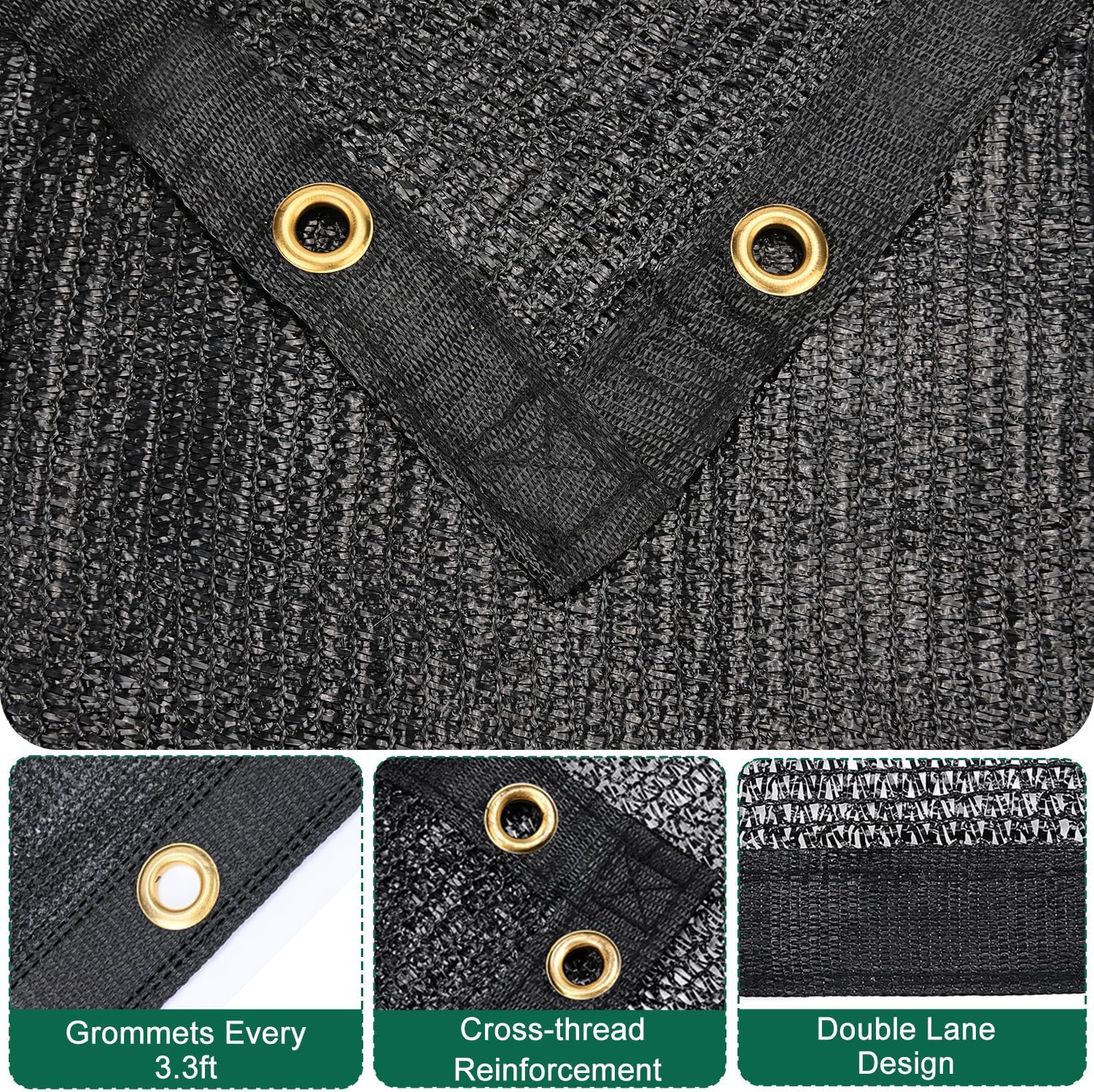 • Longer Service Life: This anti-aging & high-quality shade cloth, equipped with solid copper metal grommets on the edge, can solve the problems of aluminum lock deformation in the market. The four corners of the cloth surface are crossing sewed and reinforced, which can enhance the endurance of pulling.