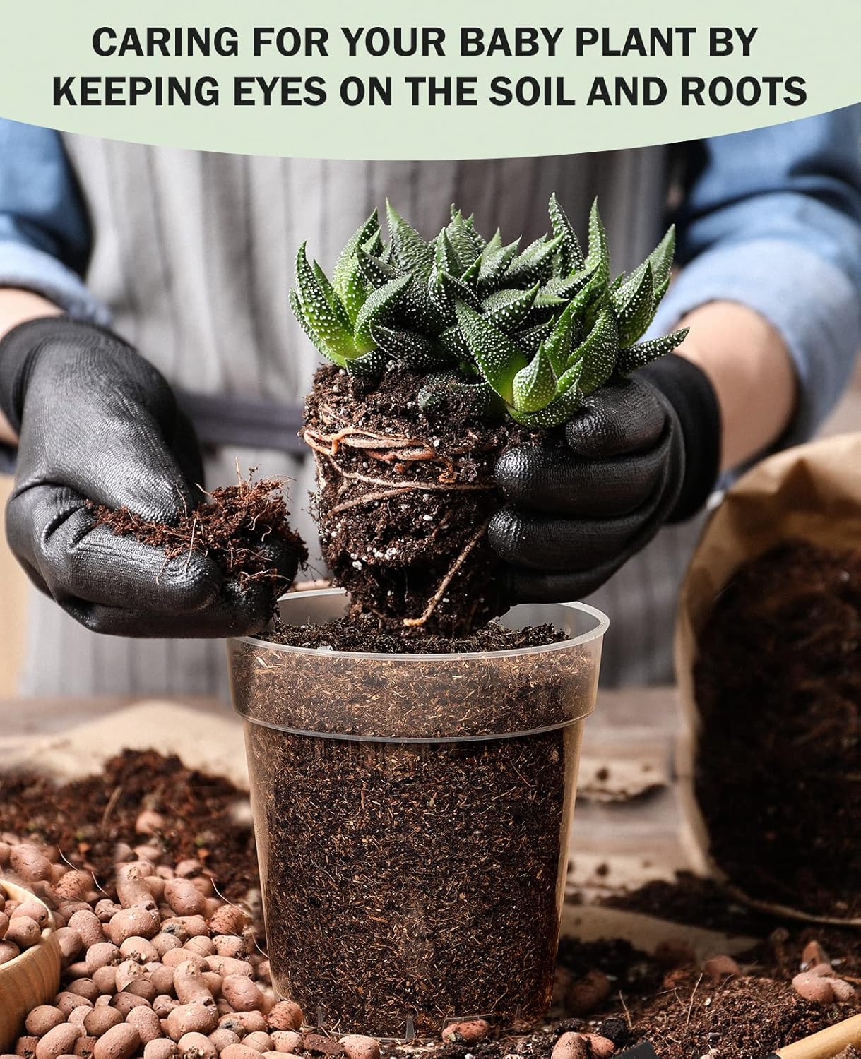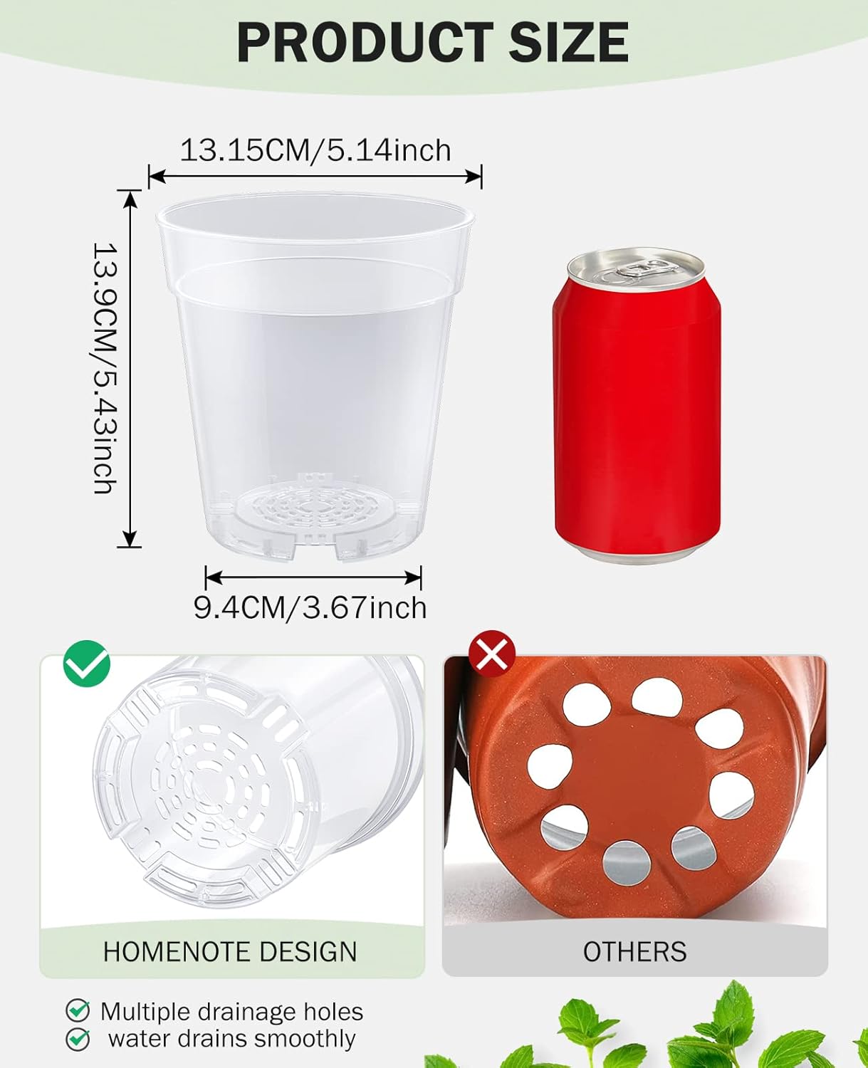 • 🌻【Abundant Drainage Holes】The bottom of these plastic plant pot comes with unique design drainage holes to keep the soil drained and ventilated, so the transparent planting pots allowing excess water to flow out and preventing root rot. The bottom of the plastic pots for plants are made raised, and the enhanced ventilation can improve the survival rate of the seeds.