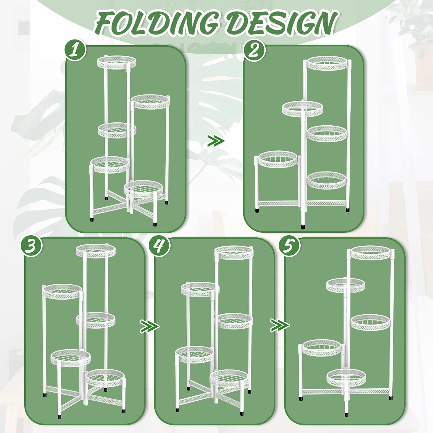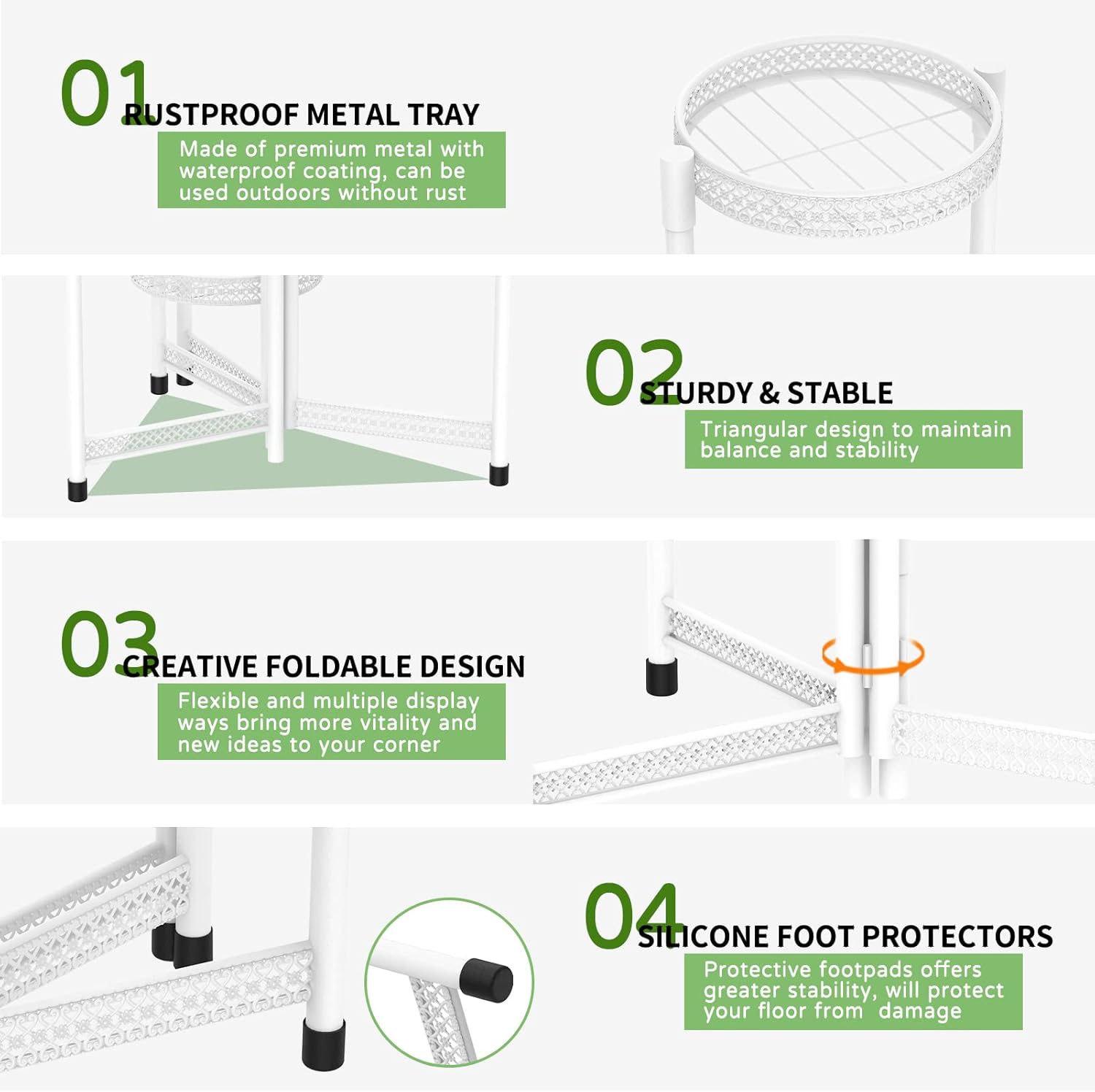 • Space-Saving Adjustable Design: The plant stand outdoor has the fixed center pole while outer legs rotate smoothly, letting you shape it to fit corners or straight spaces. It provides a flexible display that adapts easily and folds for convenient storage