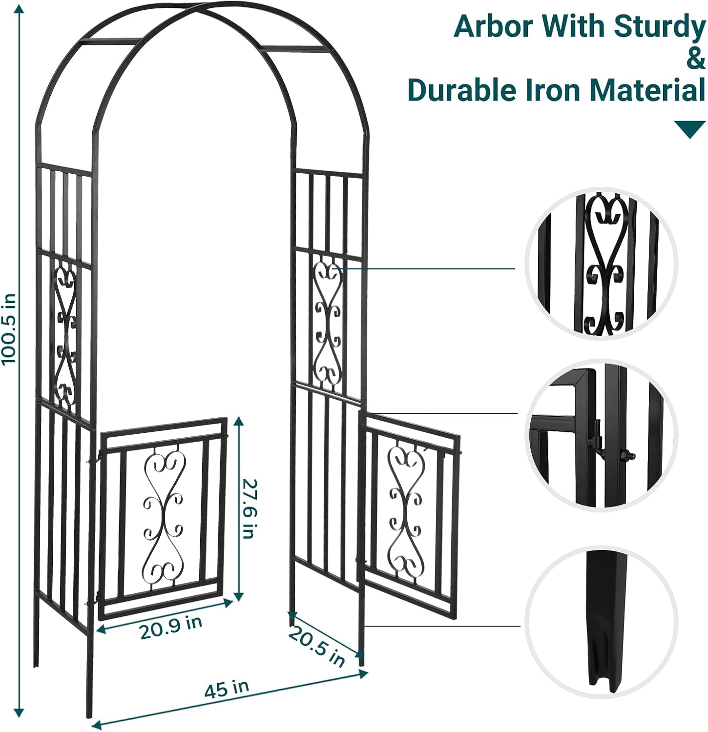 • Stable and Enduring: Rose arch made of strong, powder-coated anti-rust black wrought iron and the sturdy metal frame structure ensure its stability, durability and weather resistance for a long-time outdoor use, strength in all weather conditions.