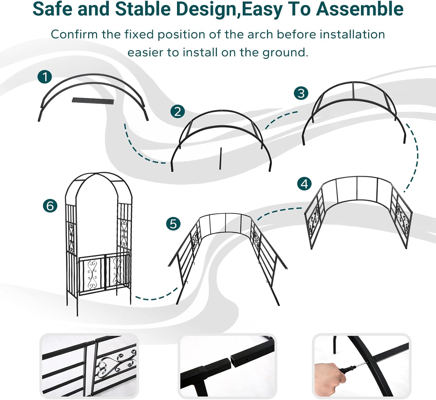 • Easy Installation of Well Made Garden Arch: Minimal assembly required with instructions provided. Funny multiplayer assembly, supplied a detailed instructions and few extra fasteners.