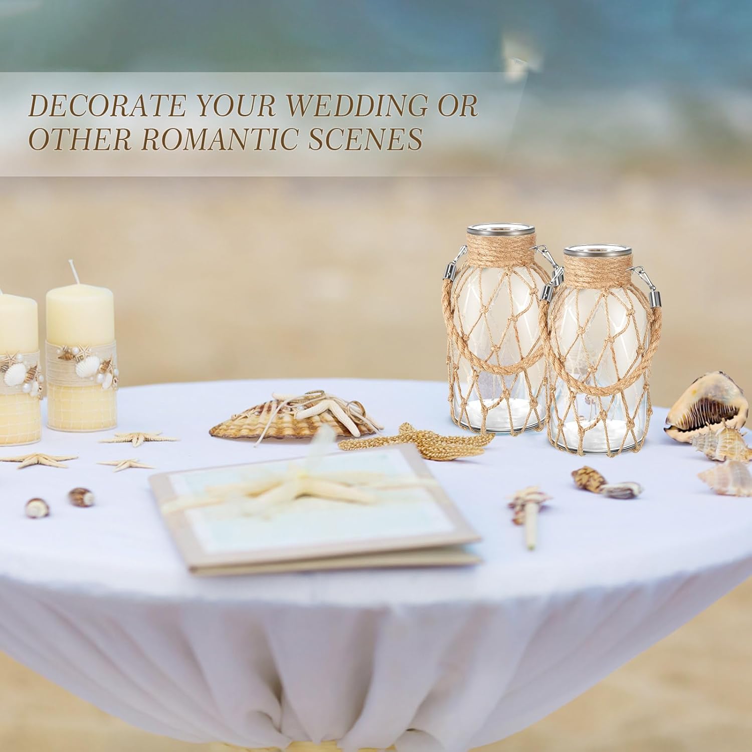 • Costal Rope Net Design: our rustic vase creatively uses jute rope net to wrap a glass vase, an aesthetic combination of clear glass and jute, simple but elegant, which can enhance the decorative style and rustic atmosphere of your interior home space; The rustic vase is also used to store sea shells and made your wedding tables look so cute