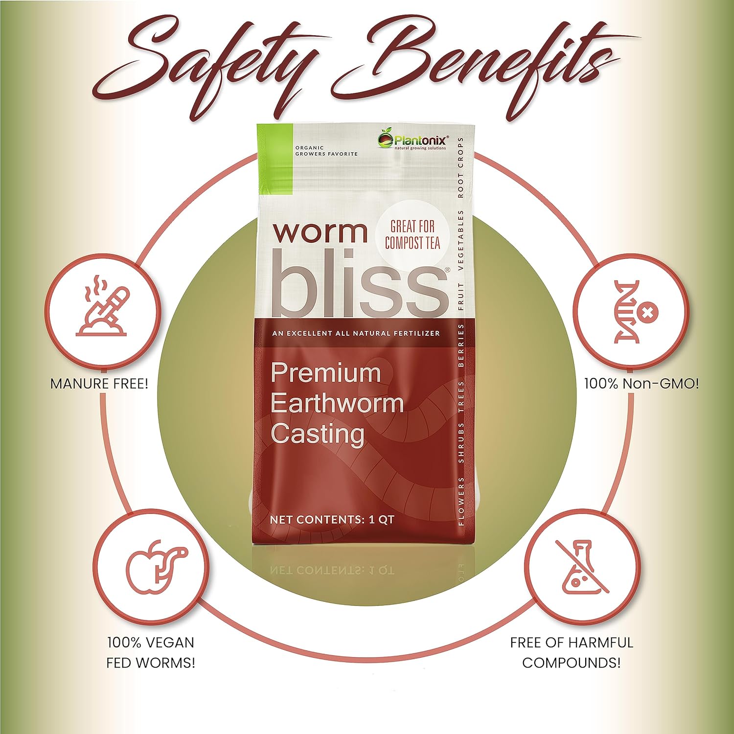 Worm Bliss (1 Qt) - Organic Worm Castings for Plants & Gardening - OMRI-Listed Earthworm Castings for Plants, Vegetables, Flowers, & Potting Soil - Organic Garden Fertilizer Rich in Nutrients