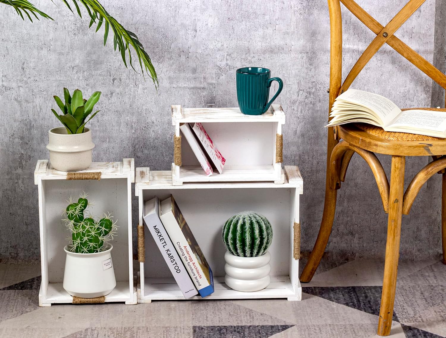 • UNIQUE DESIGN – The rectangular nesting crates have natural wood grain and knots on the surface, so each crate is unique, the farmhouse jute rope cutout handles make them easy to carry around.